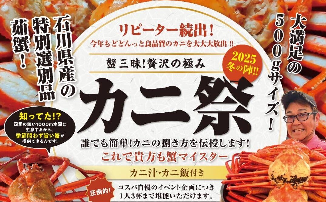 早いもの勝ち!リピーター続出!毎回満席の”カニ祭り”が再び開催!!