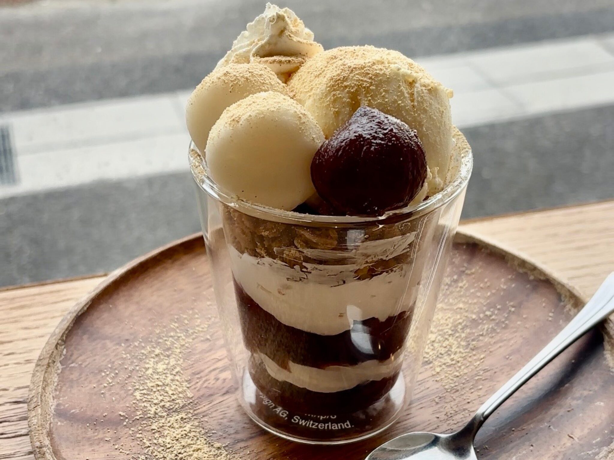 ぎっしり入った自家製グラノーラに、アイスクリーム、大きな栗、白玉までのった贅沢な和スイーツ。