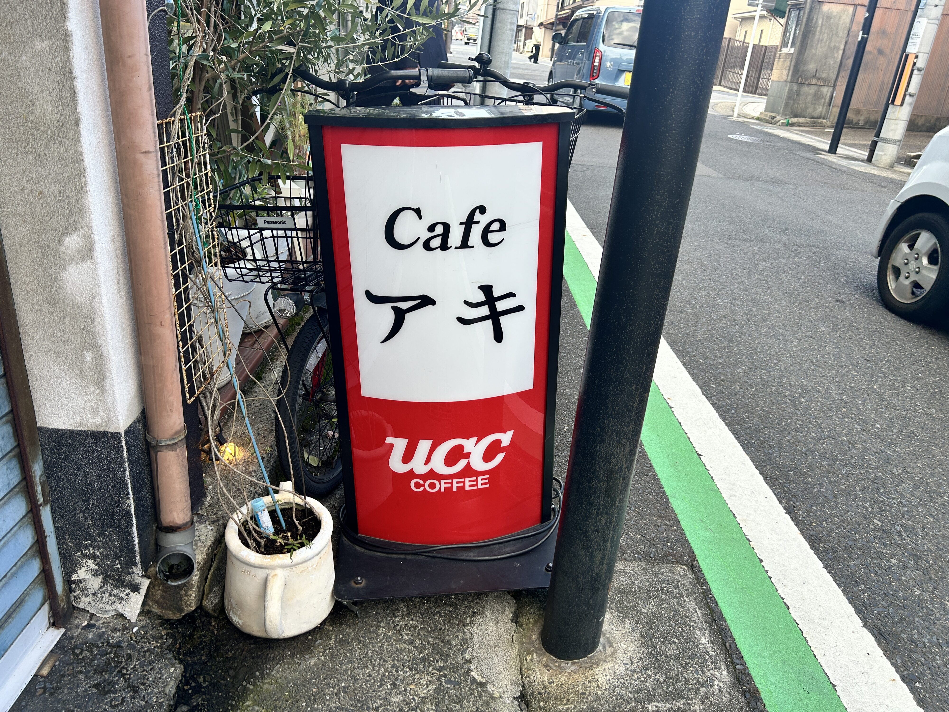 大津駅からほど近く、京町通りに佇む昔ながらの「カフェアキ」。外観からすでにレトロで味があり、“地元の人に長く愛されてきたお店”という空気がじんわり漂います。