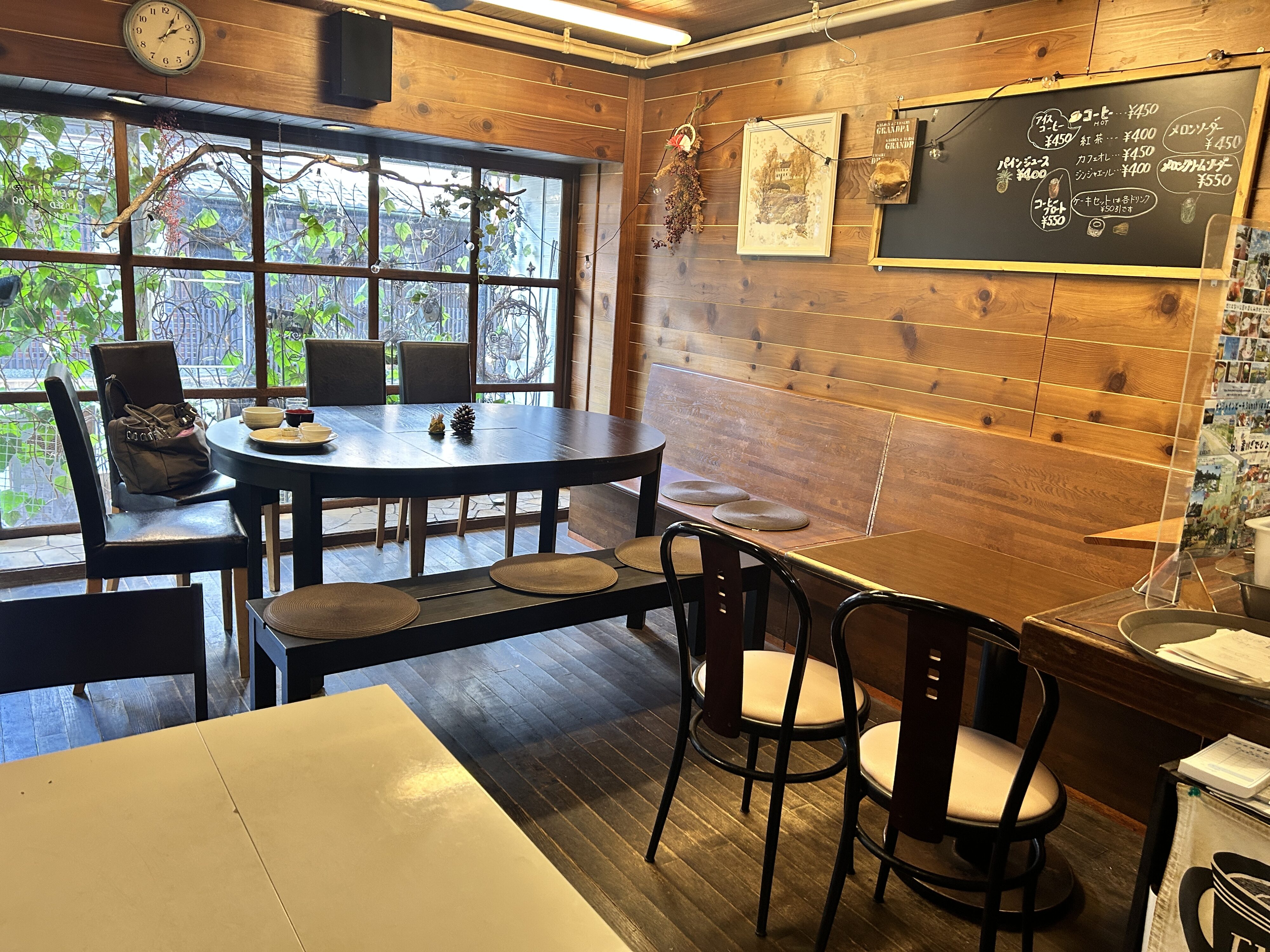 店内に入ると木の温もりが広がる空間で、思わずほっと一息つける落ち着いた雰囲気。昭和の喫茶店らしい温かさを感じられる一軒です。