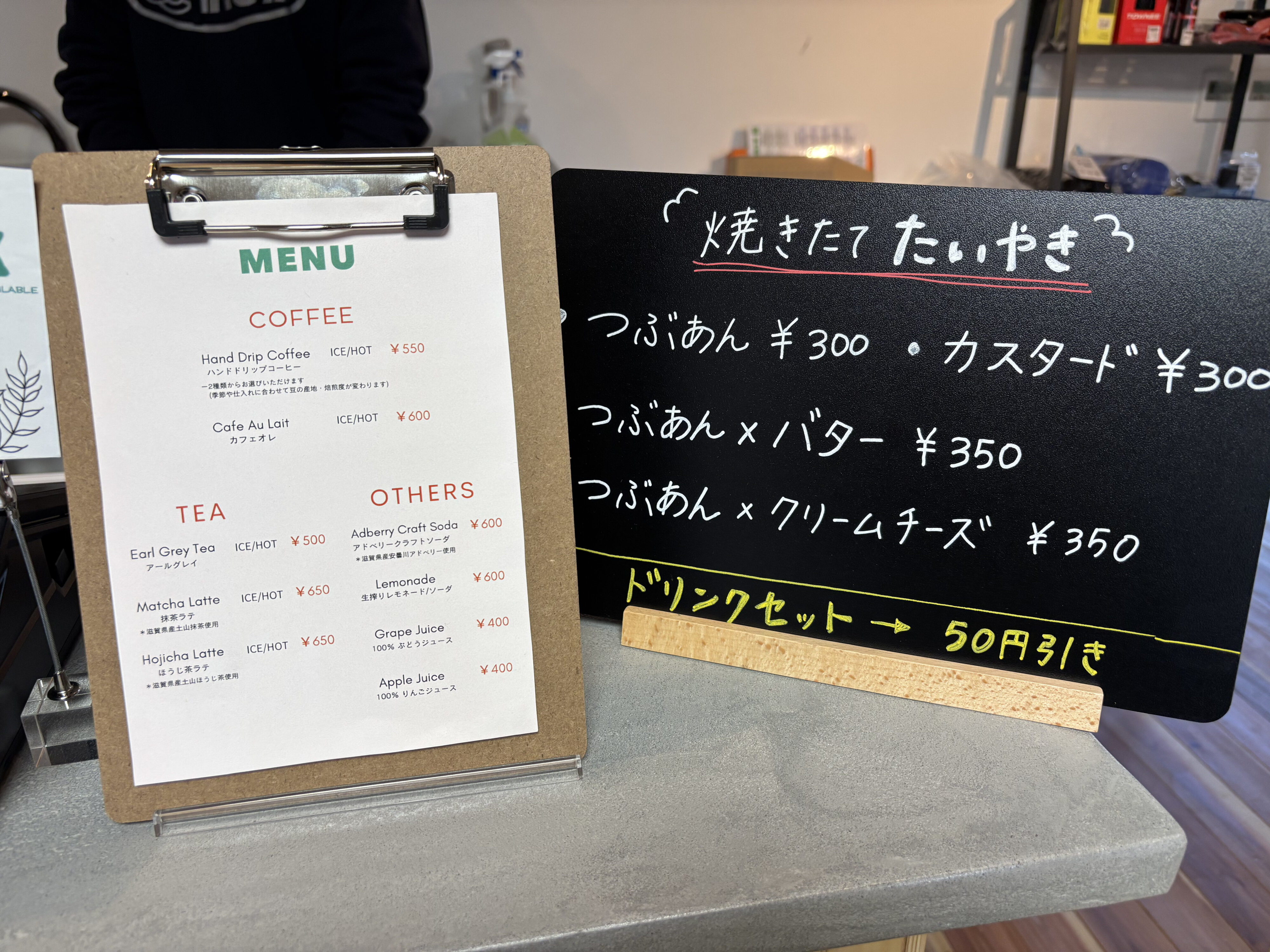 焼きたてたい焼きとドリンクでひと息つける、筆者推しのカフェスタンドです。