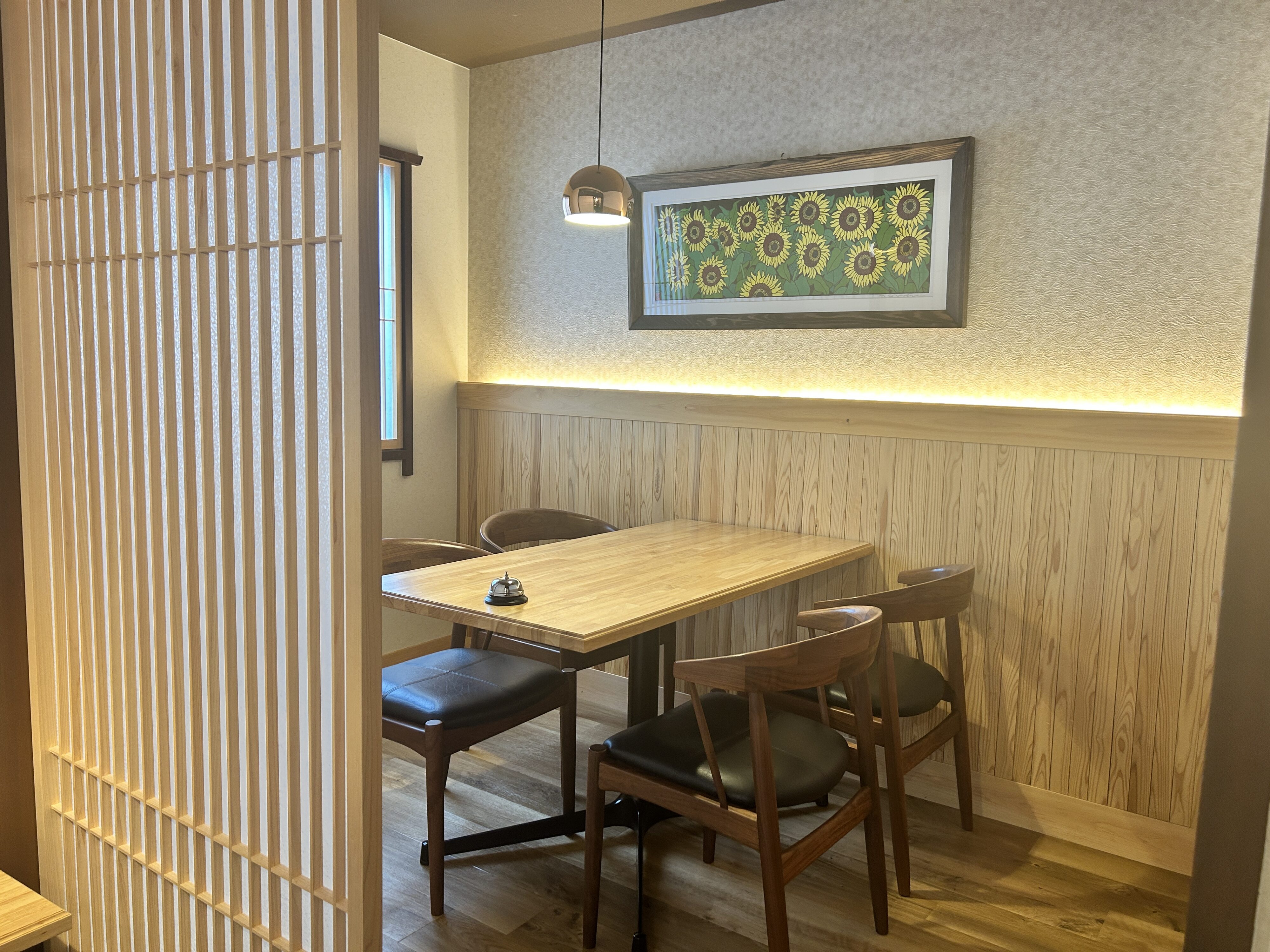 白い暖簾をくぐると、木の温もりを感じる落ち着いた店内が広がりテーブル席のほかに個室も完備されているので、ゆったりと食事を楽しみたいランチタイムにもぴったりです✨