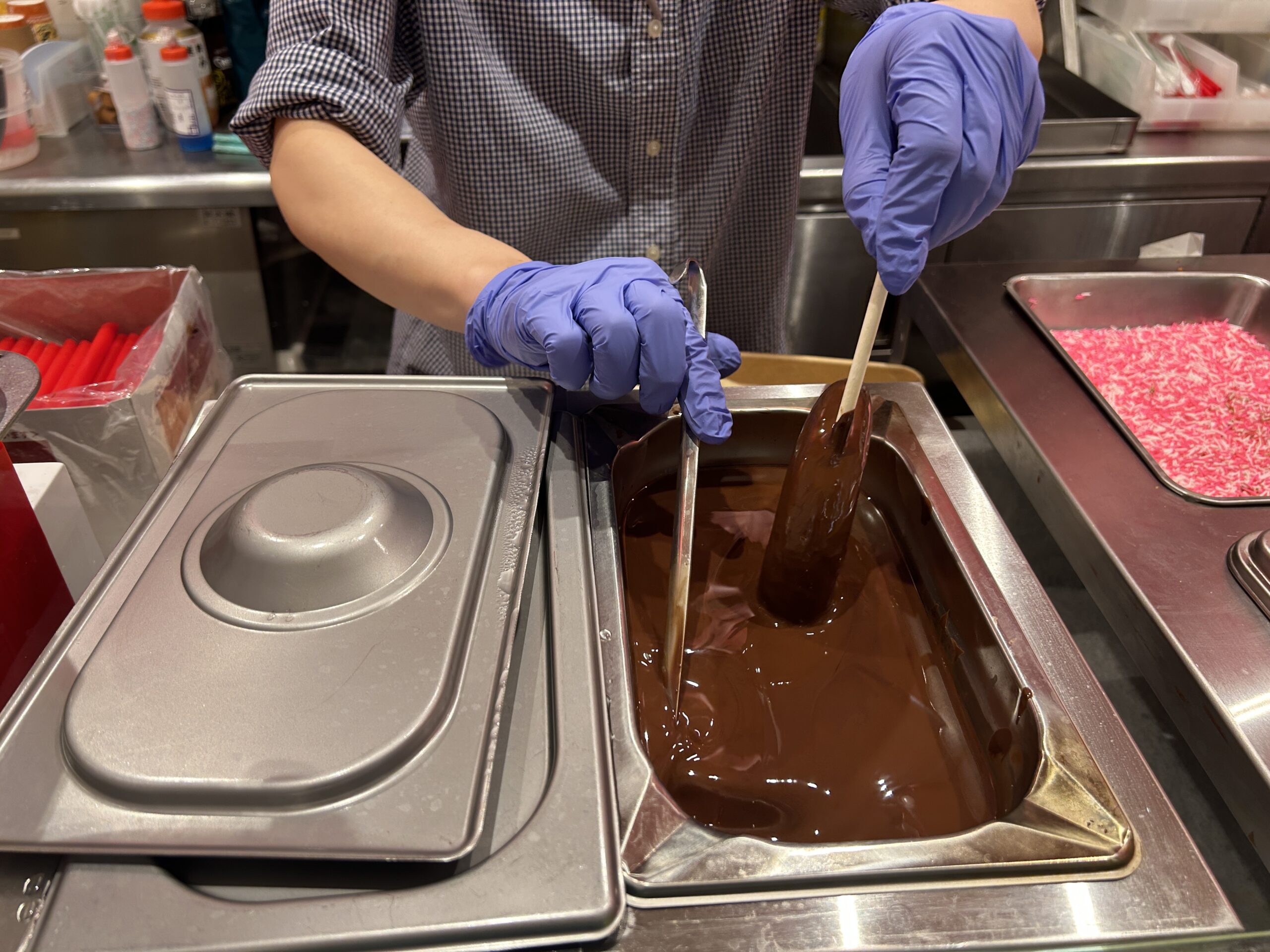 フローズンバナナに、その場でたっぷりチョコレートをディップ🍫