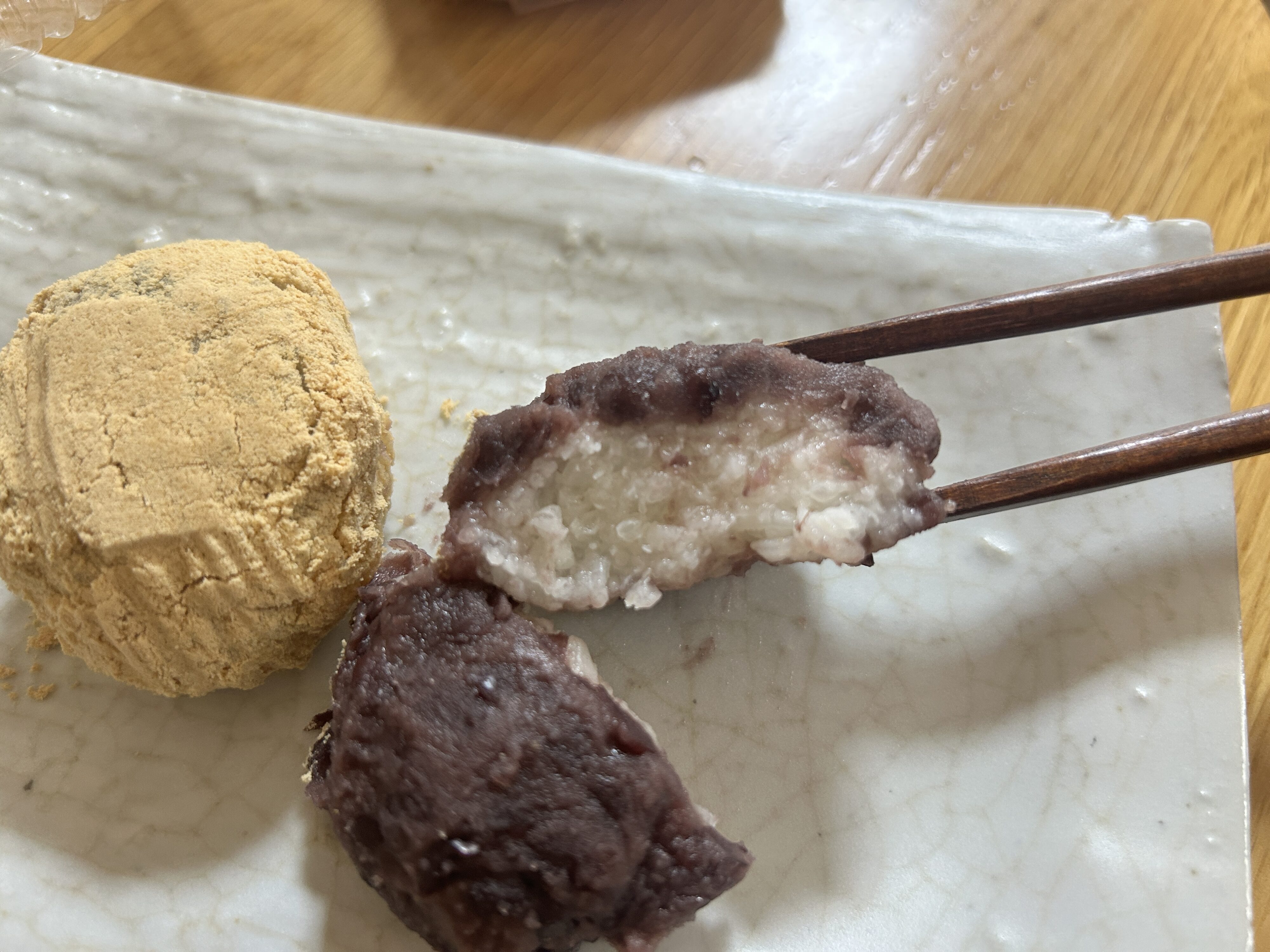 甘すぎないあんこがもち米を包み込んでいて、少し塩味も感じ、、、これは美味しい!!