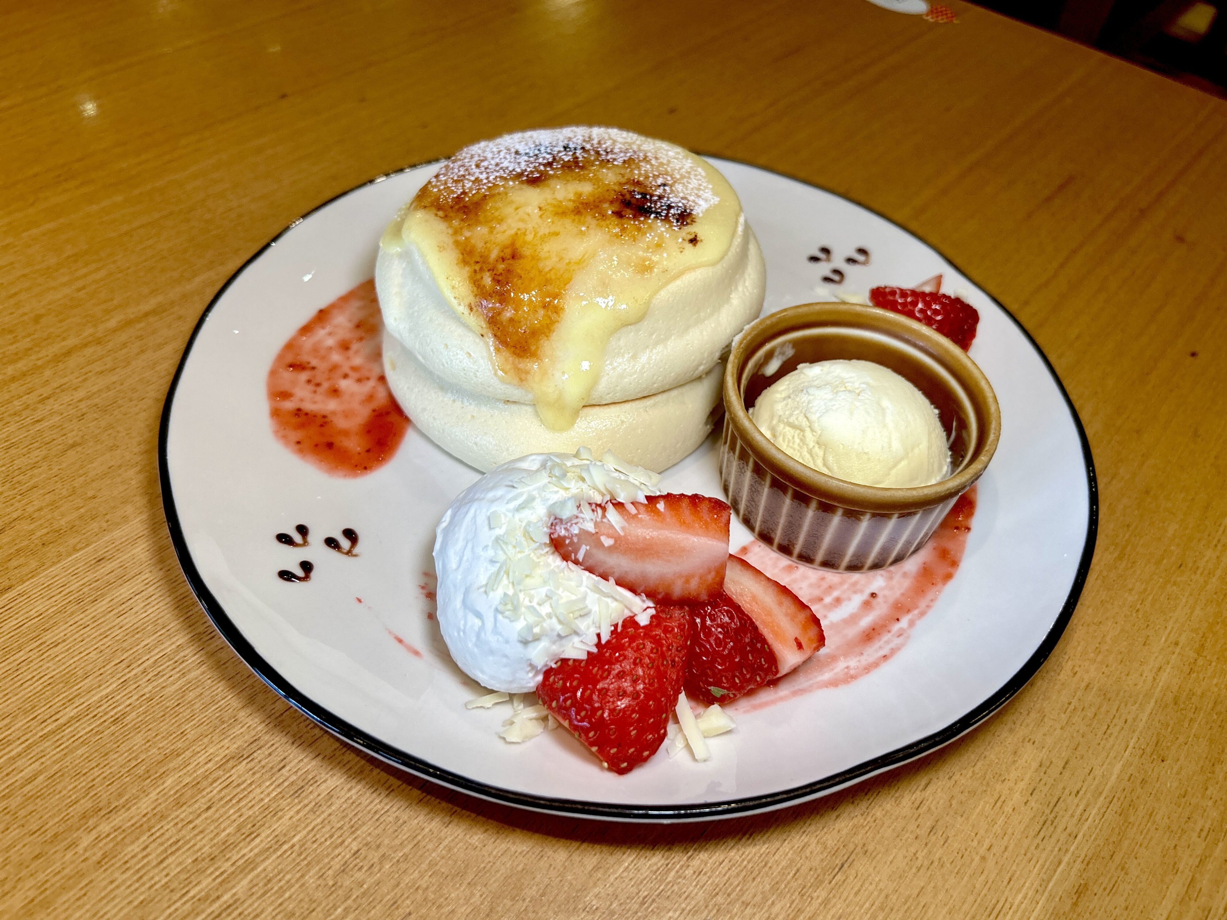 冬限定(1日数量限定)いちごとホワイトブリュレのブリュレパンケーキ(2枚)/1,500円