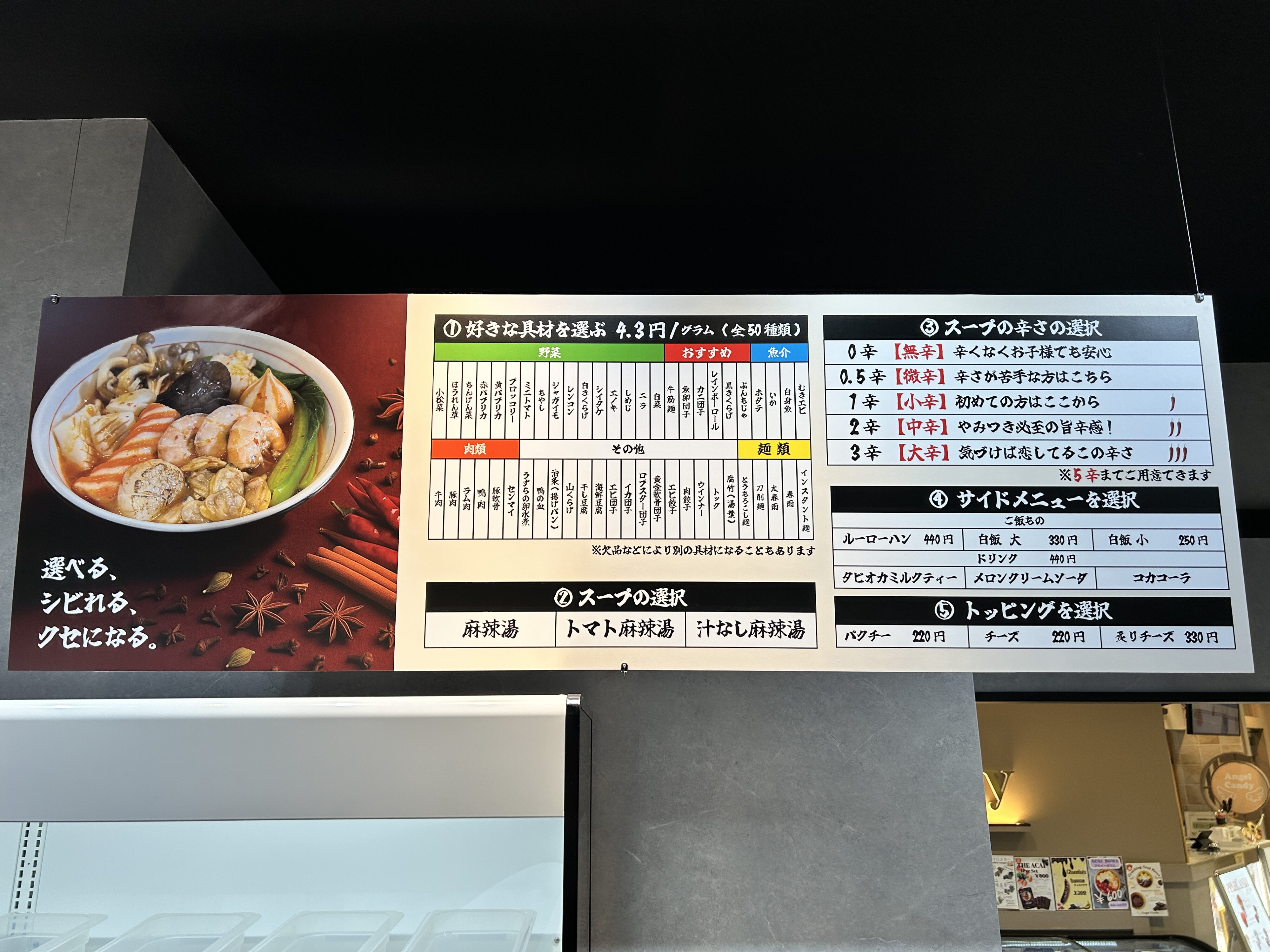 ただ辛いだけでなく、スープにはコクがあり、選んだ具材の旨みが溶け込んでいくのもポイント。