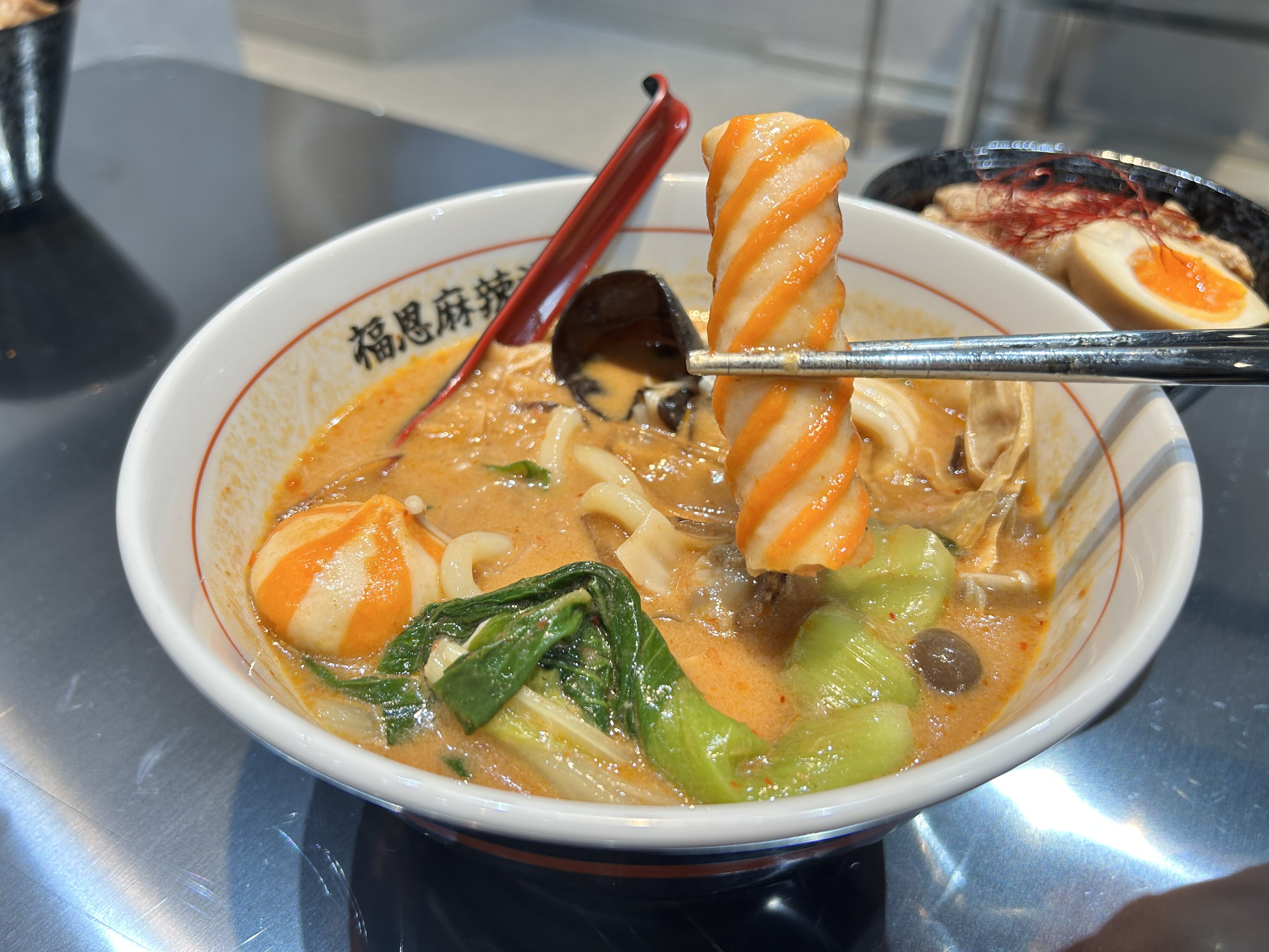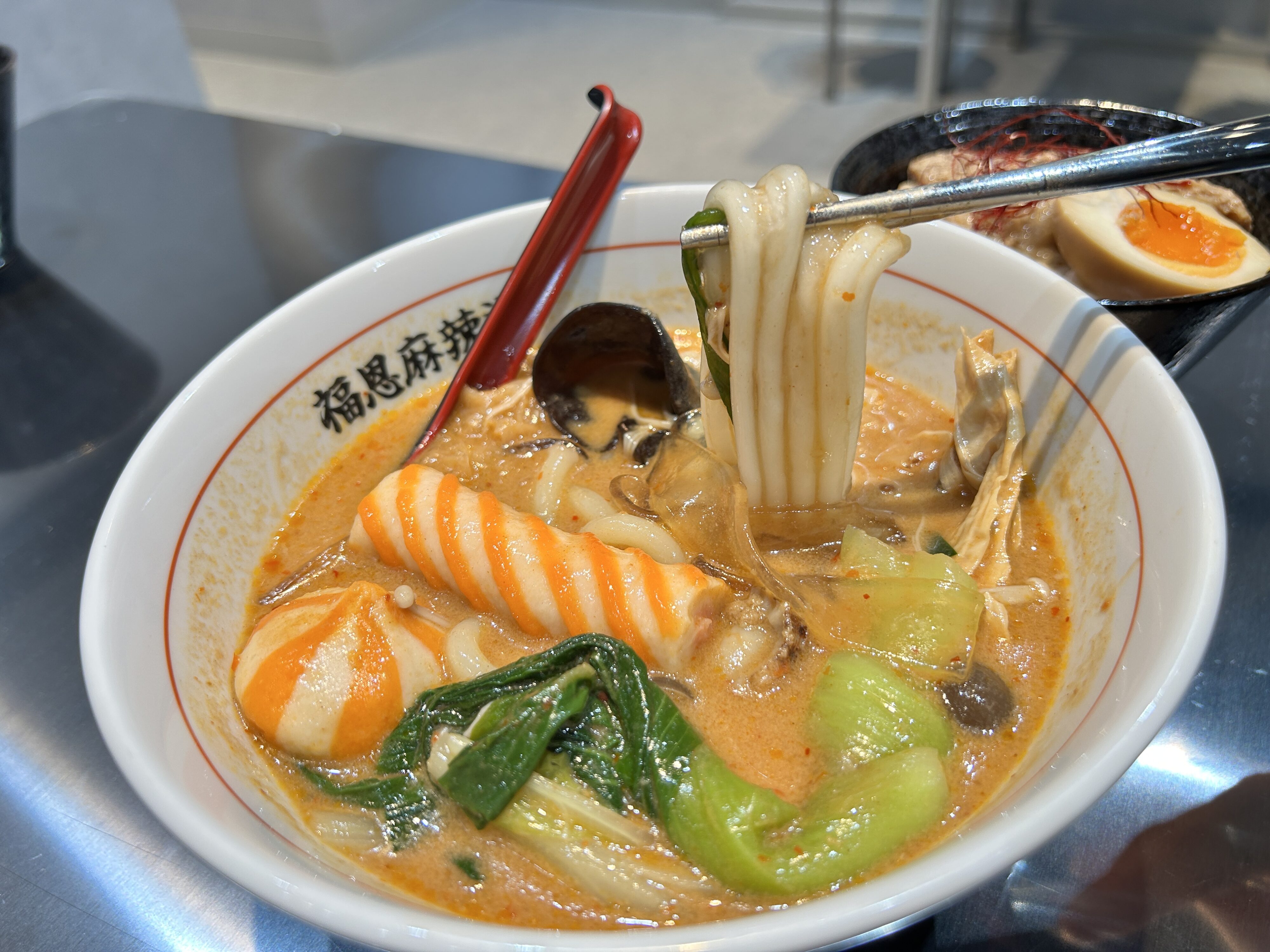 具材は、練り物・野菜・海鮮を中心にセレクトし、麺はほぼ4種類をミックス。どの麺ももちもち食感で食べ応えがあり、スープとの相性も抜群でした!!