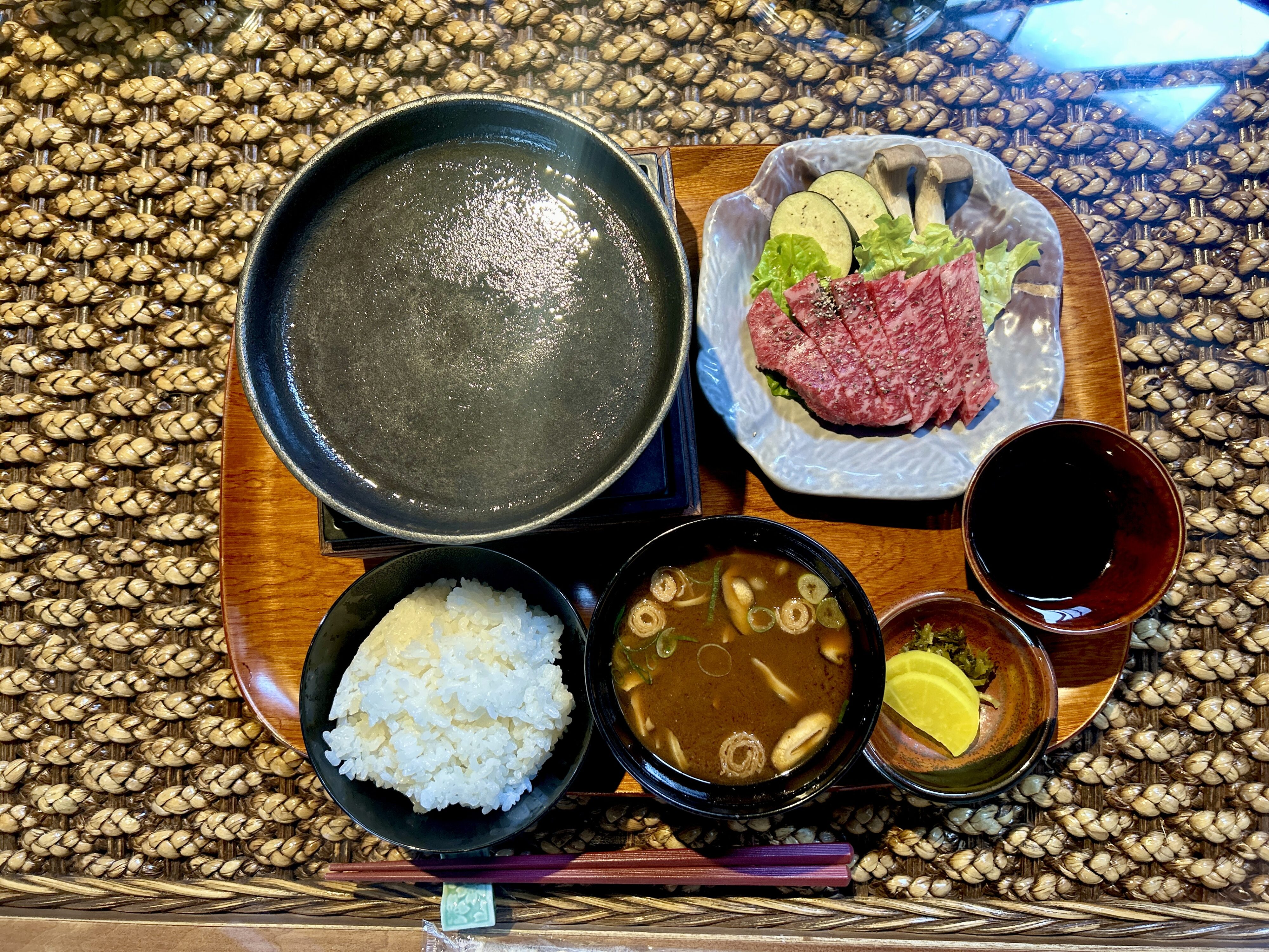 熱々の鉄板で、自分で焼き加減を調整しながら楽しむスタイル。焼き立ての香ばしさと、和牛サーロインならではの旨みをダイレクトに味わえます。ランチとは思えない贅沢さで、特別な日のご褒美ランチにもぴったりです☺️