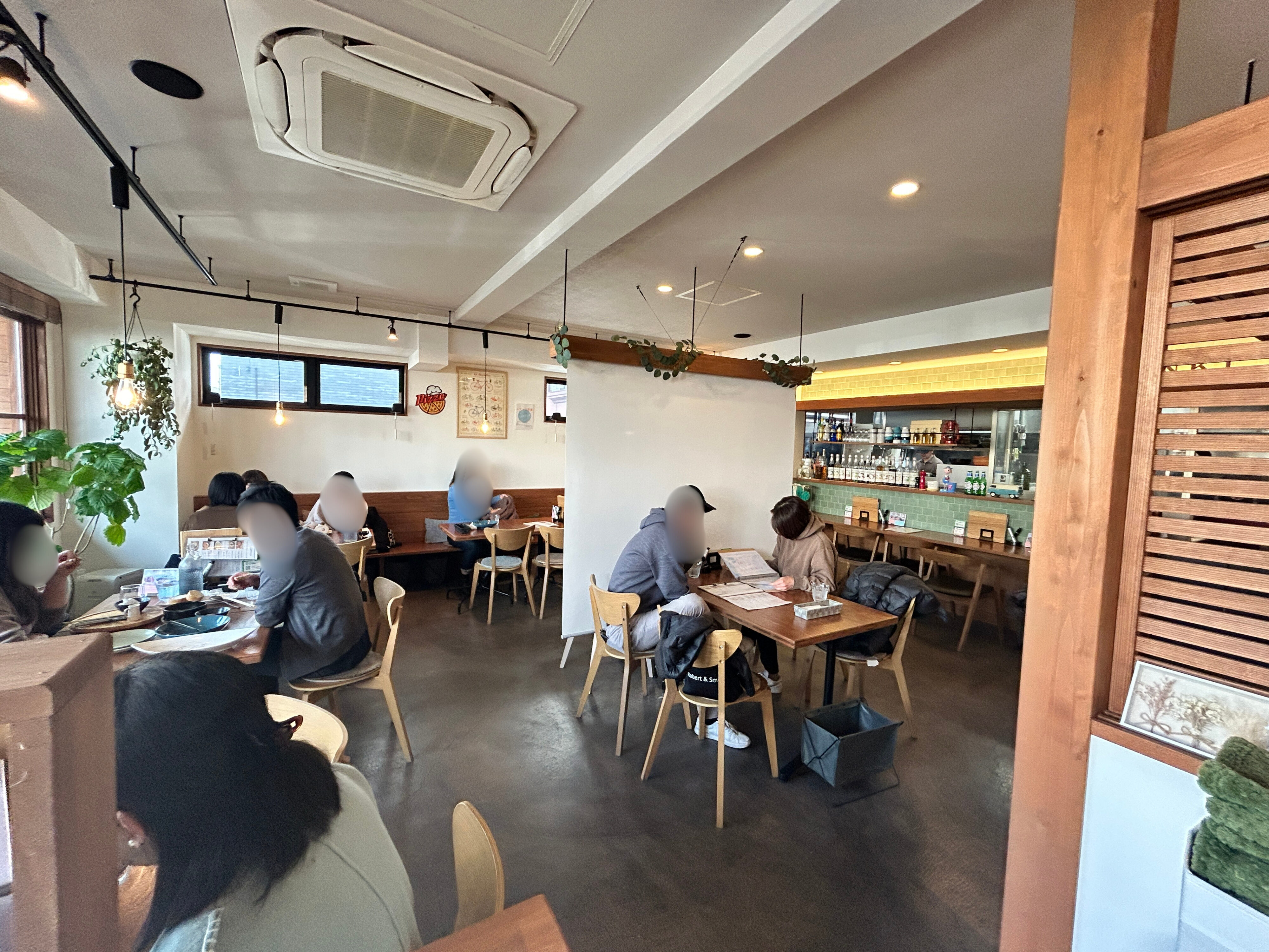 店内は木の温もりを感じるナチュラルな空間。カウンター席・テーブル席があり、おひとりさまから友人同士、ファミリーまで利用しやすい雰囲気でした♪