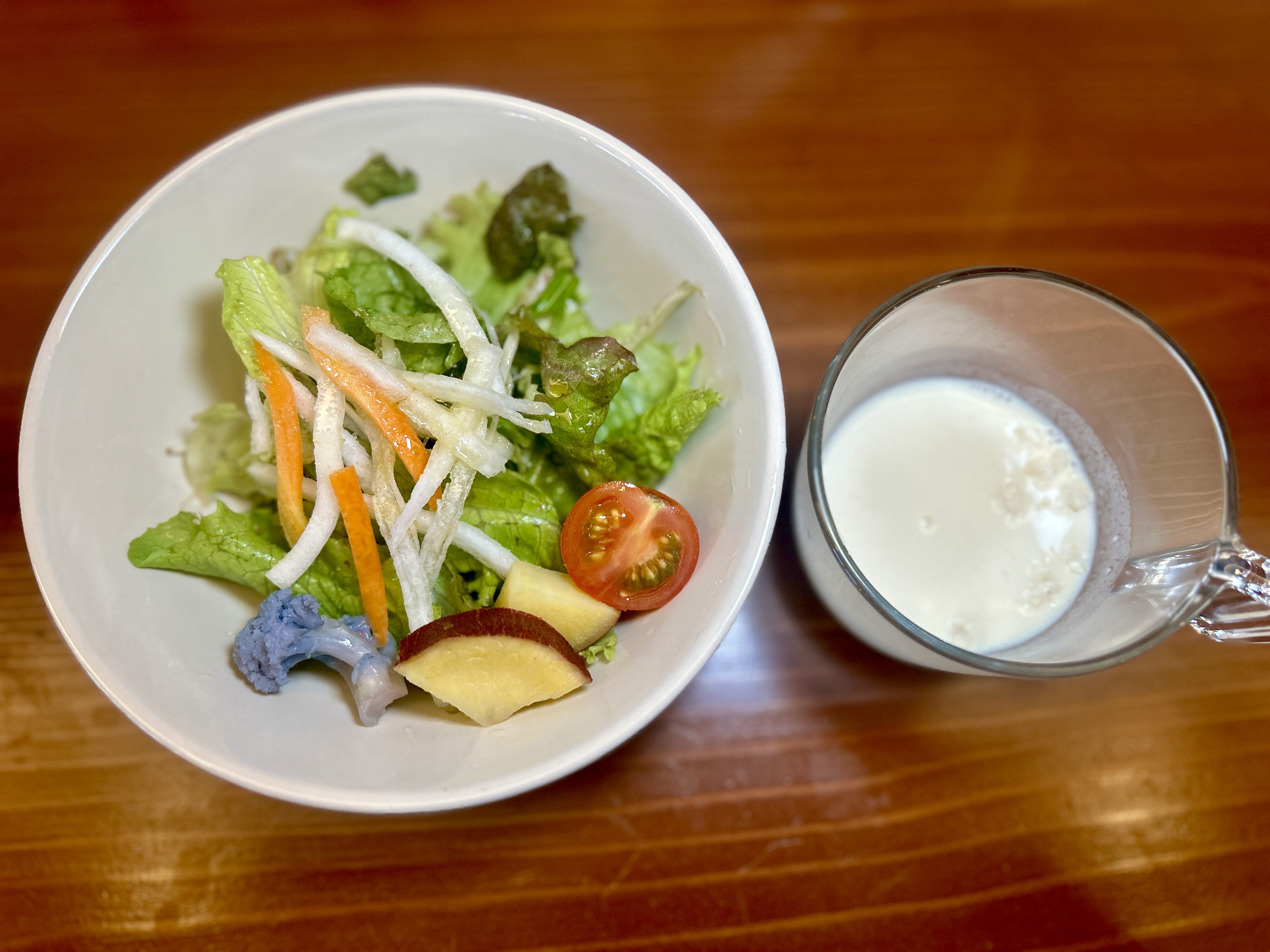 ドレッシングはオリーブオイルと塩のみというシンプルさで、野菜本来の味がしっかり感じられました☺️
