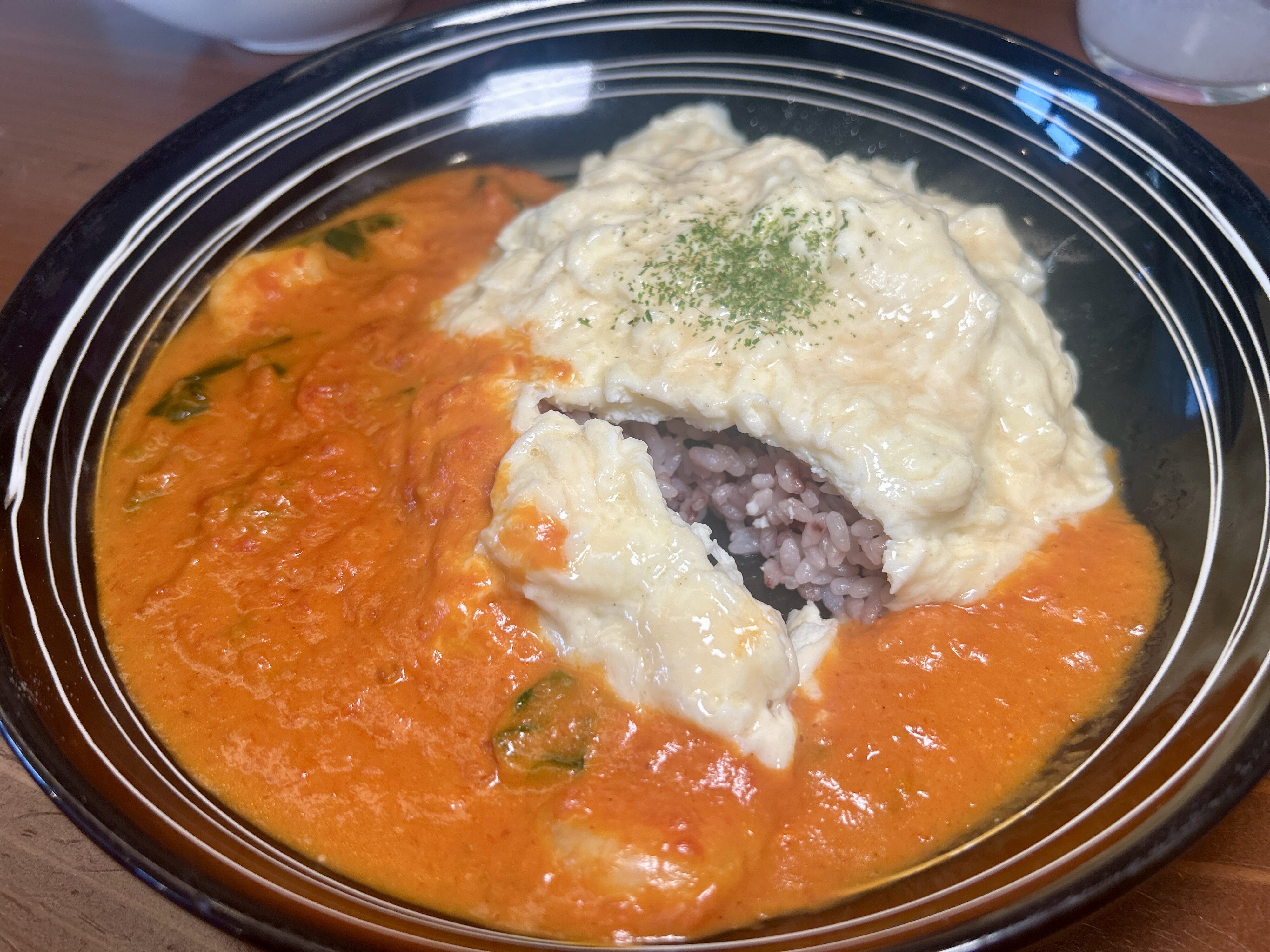 そこに酸味のきいたトマトクリームソースが合わさり、相性は抜群!これはまさに飲めるオムライス!