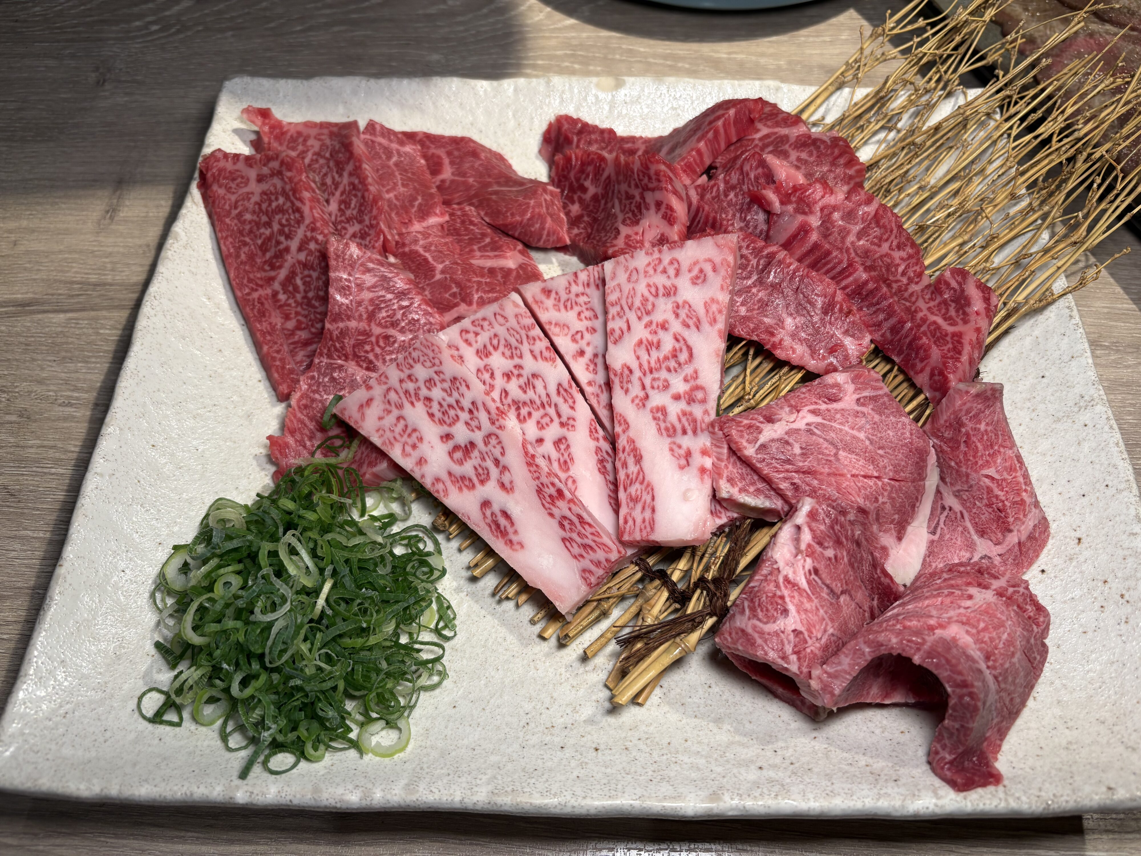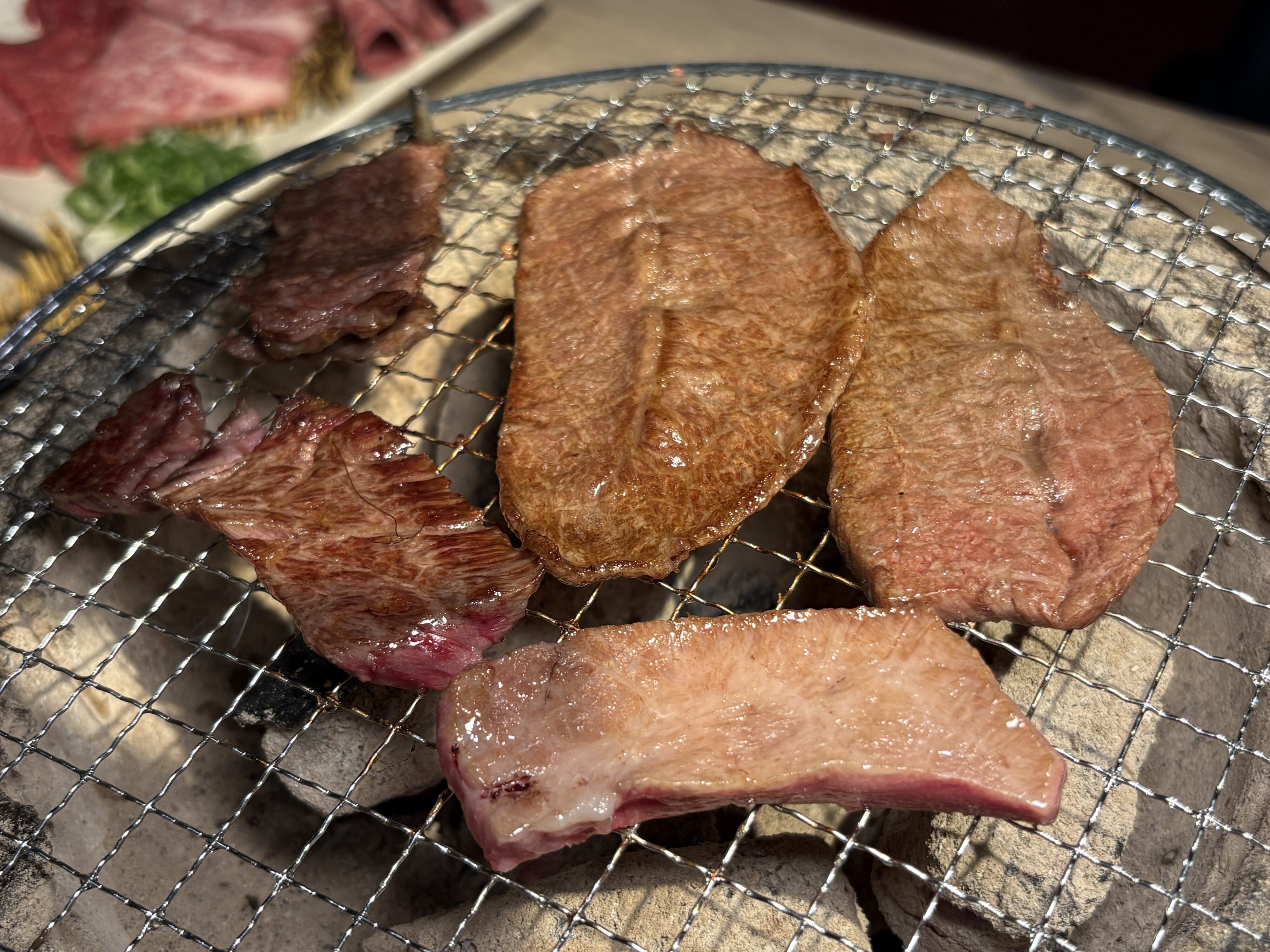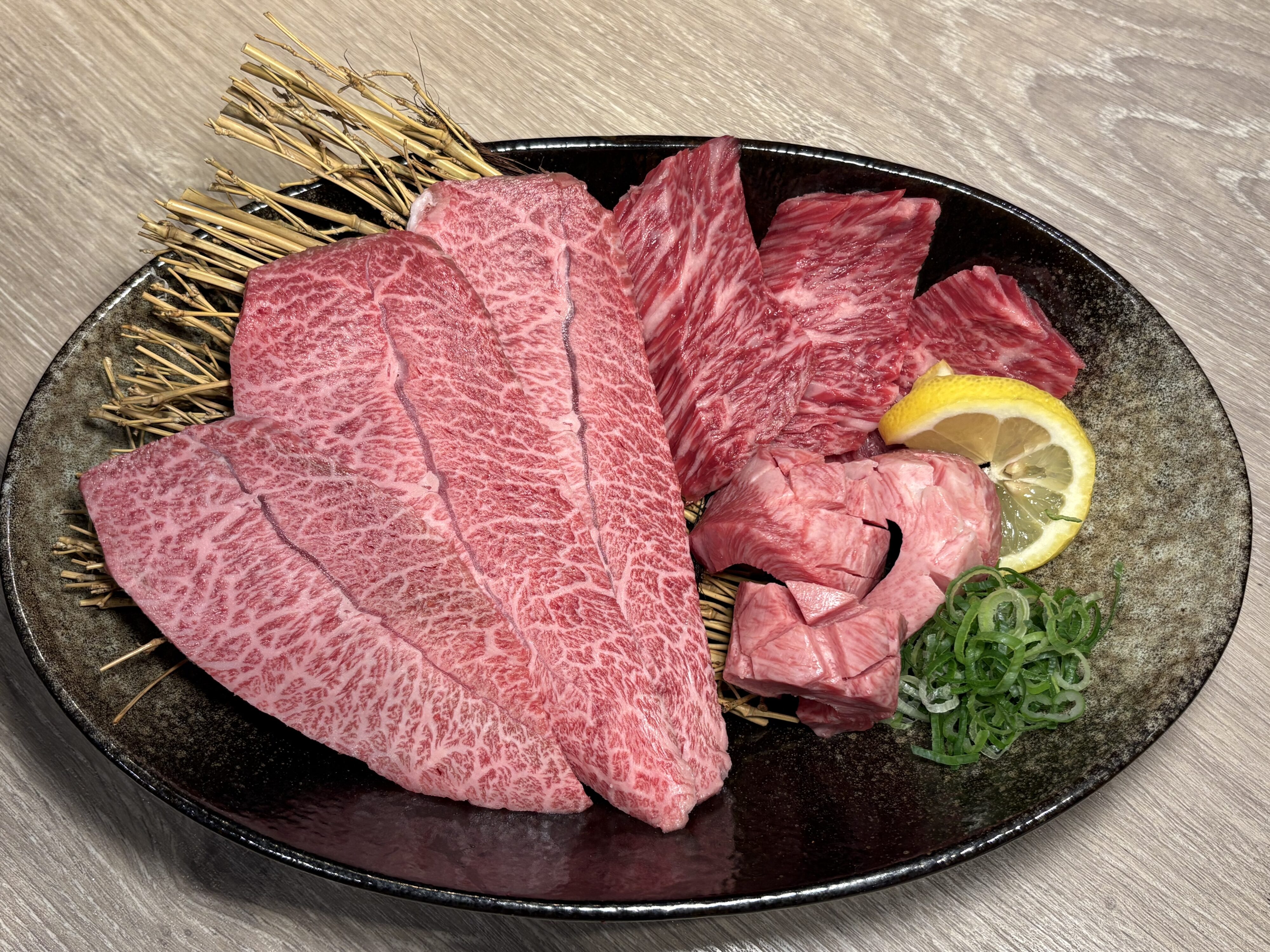 焼肉メニューのほとんどに近江牛を使用。カルビやロースといった定番はもちろん、厚切りタン・ミスジ・ハツミなど希少部位まで勢揃い!どの部分も丁寧にカットされ、旨みと柔らかさが際立ちます。