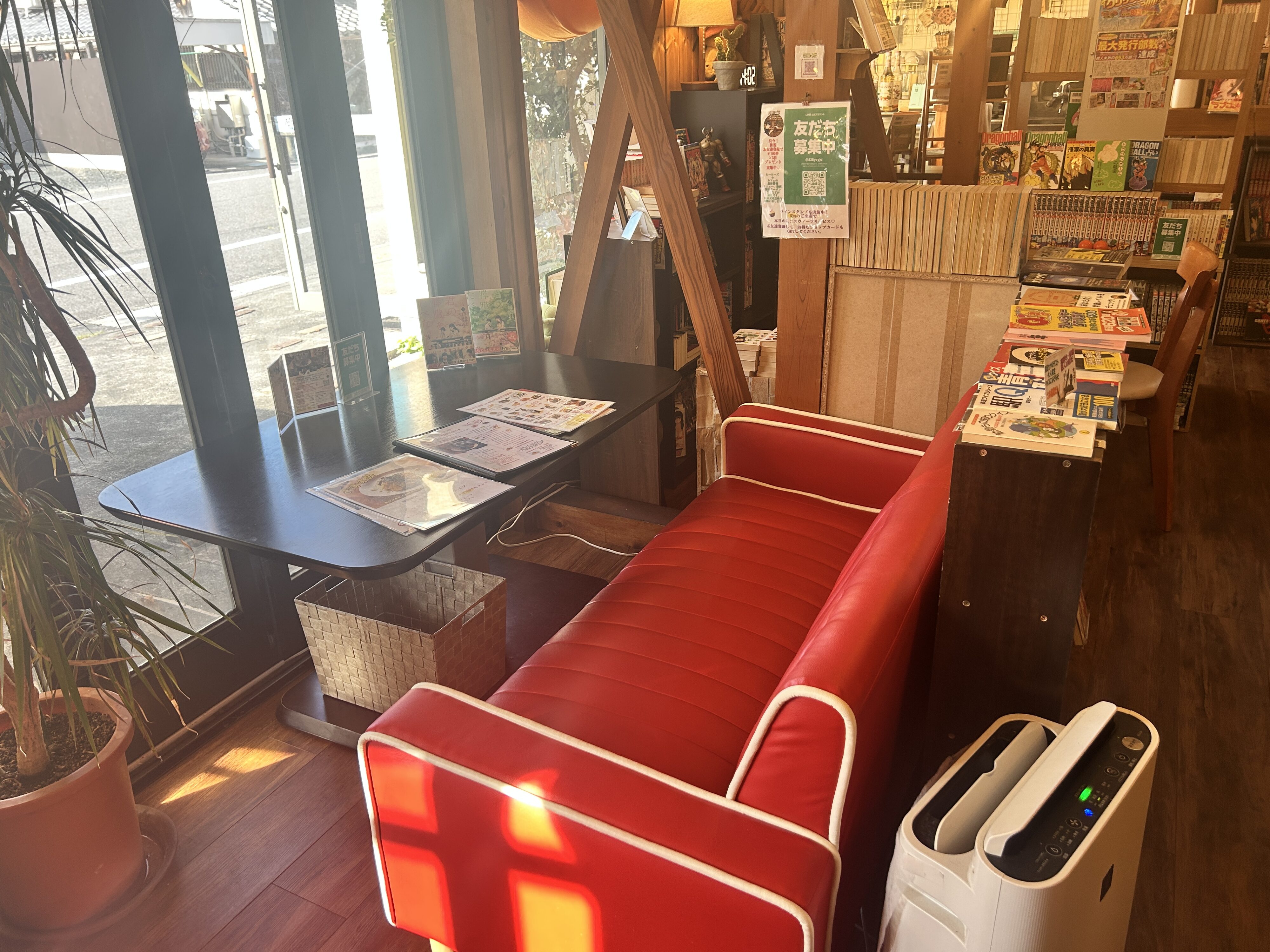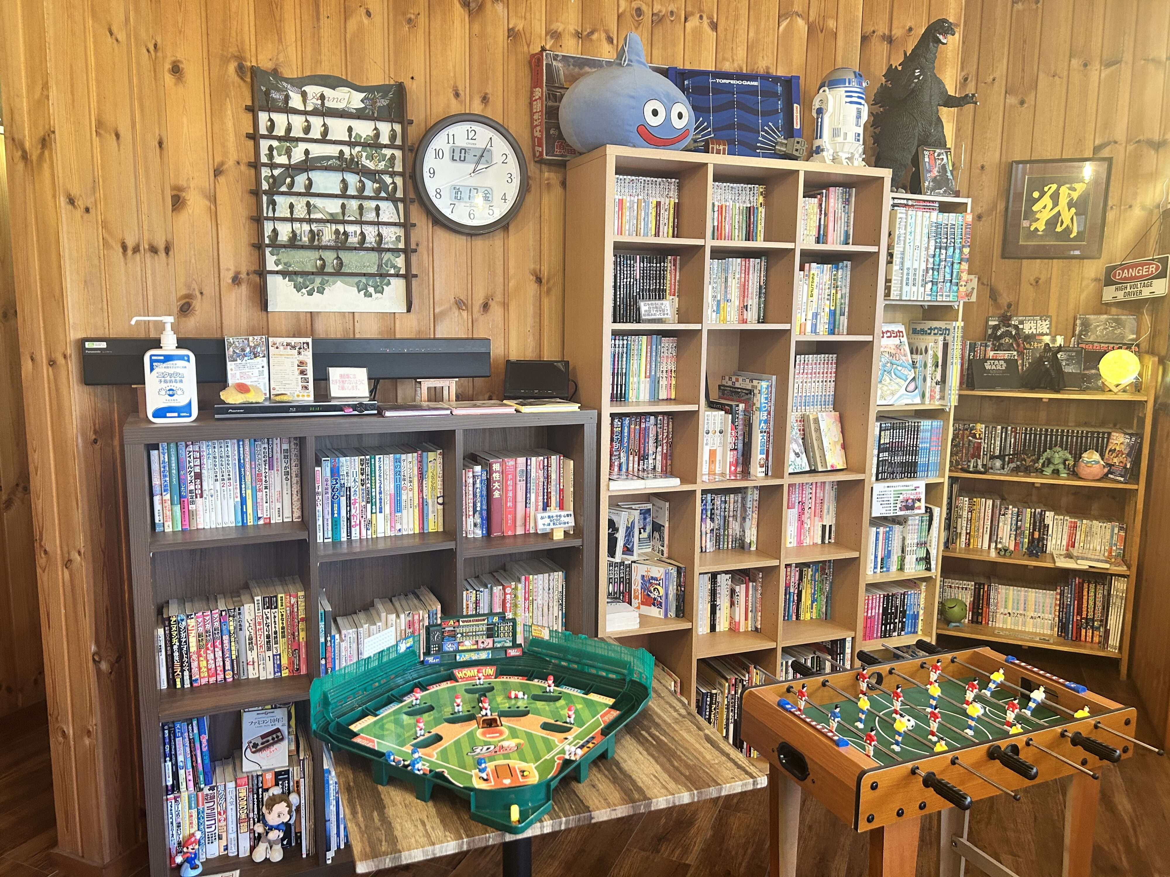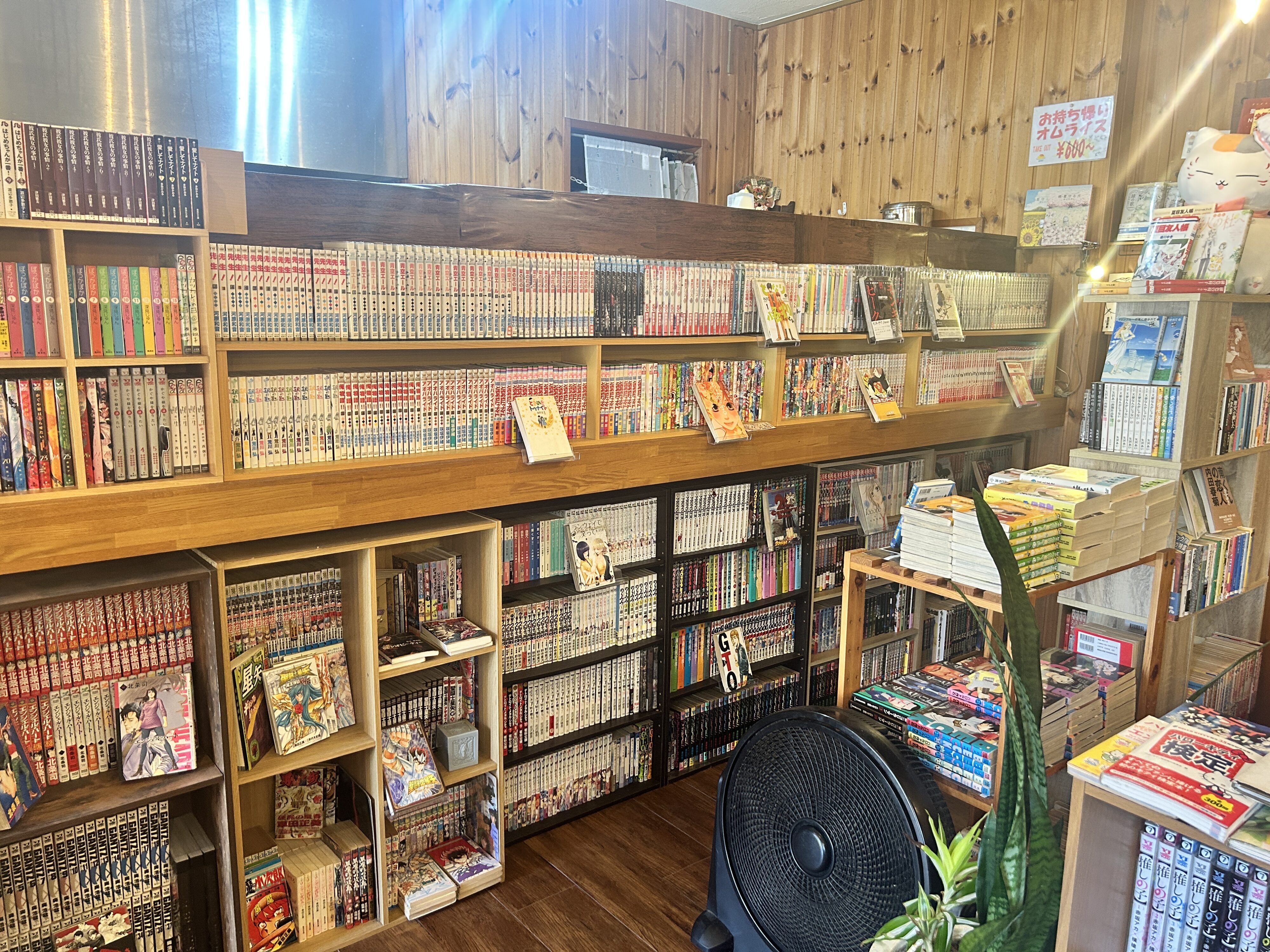店内にはなんと漫画・雑誌など約1万冊の本がずらり!!好きな本を手に取りながら、時間を忘れて過ごせる夢のような空間です!