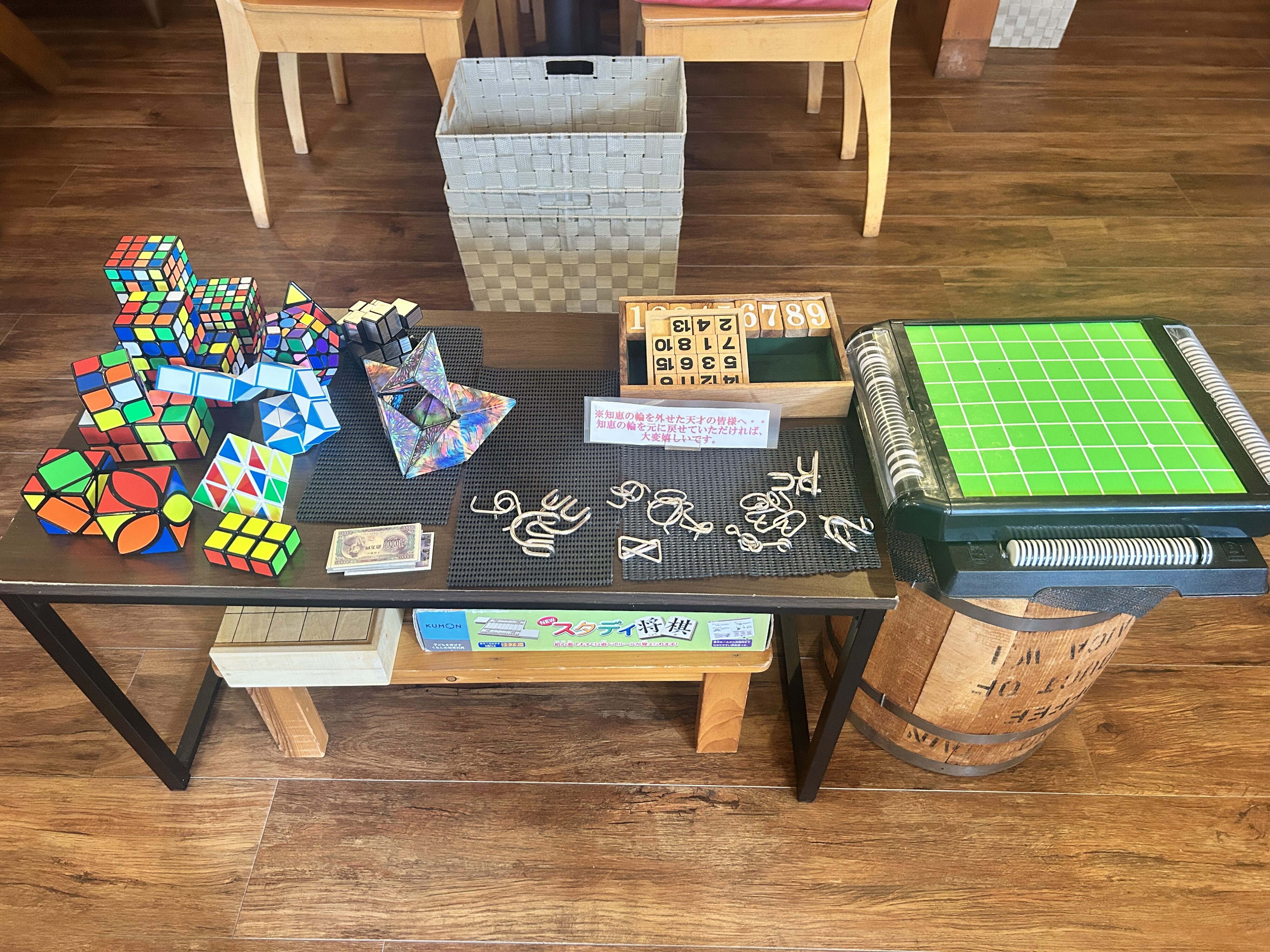 漫画だけでなく、ルービックキューブや知恵の輪、ボードゲームまで揃っていて子供から大人までワクワクが止まりません✨