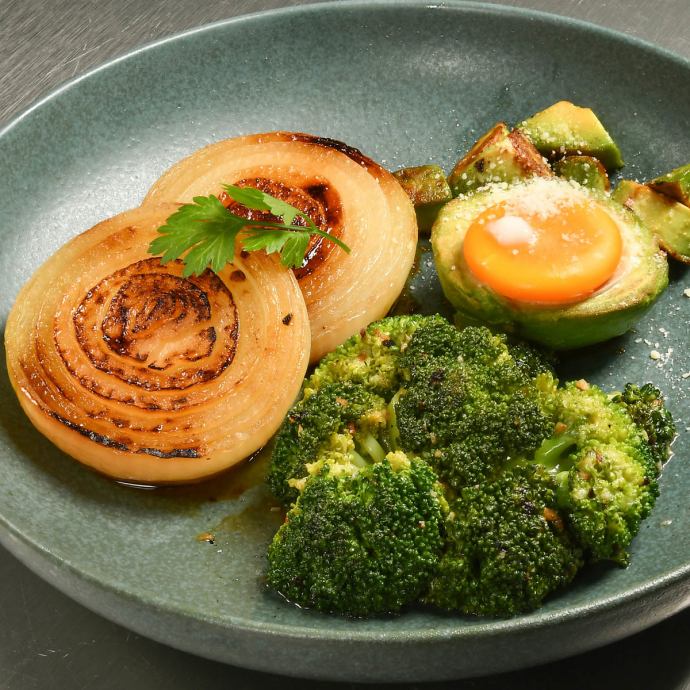 ヒトモシでは、地元農家さんから届く新鮮なお野菜やお肉、海鮮を、炭火と鉄板で丁寧に焼き上げるのがこだわり。
