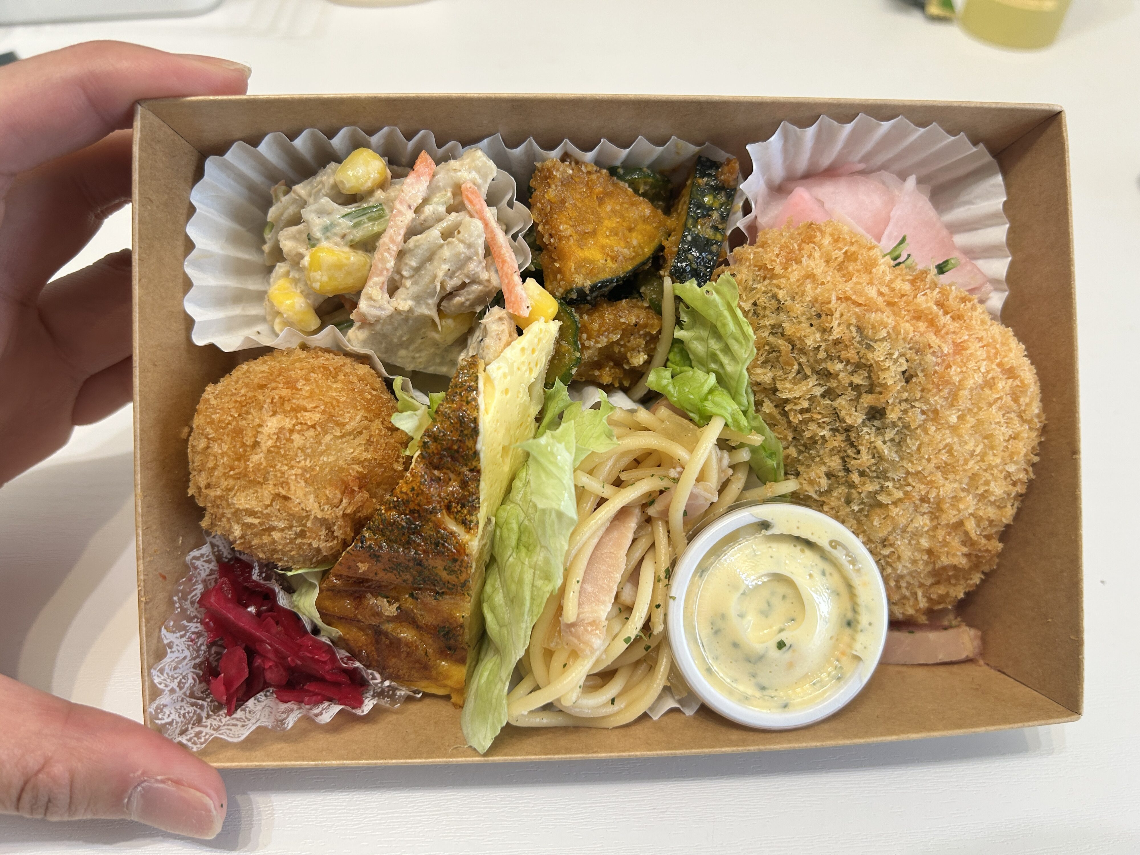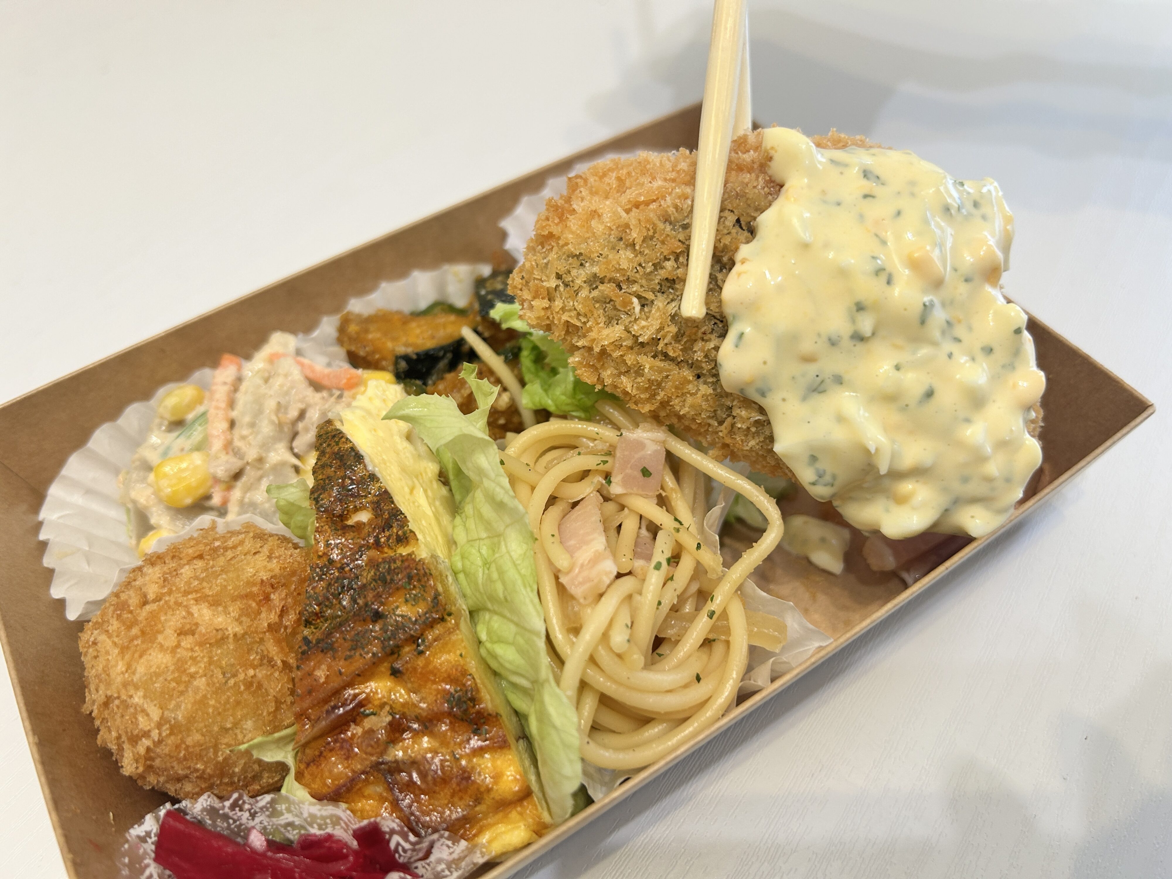 とにかくお弁当・デリの種類が本当に多く、どれにしようか悩みましたが、この日選んだのは「デリ7種」フィッシュフライ(880円)。