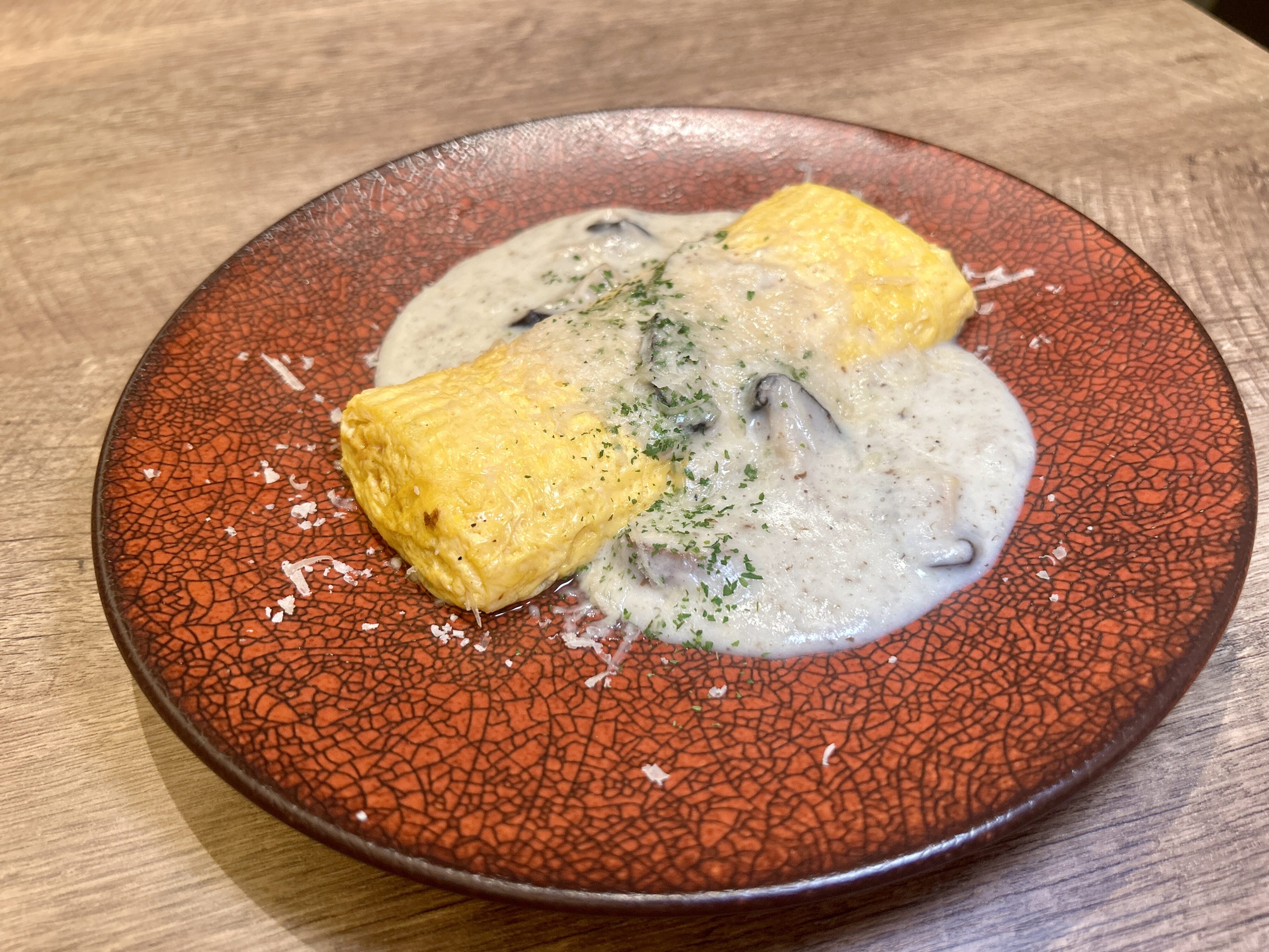 ◯ だし巻き椎茸クリームソース ¥890(税込)
