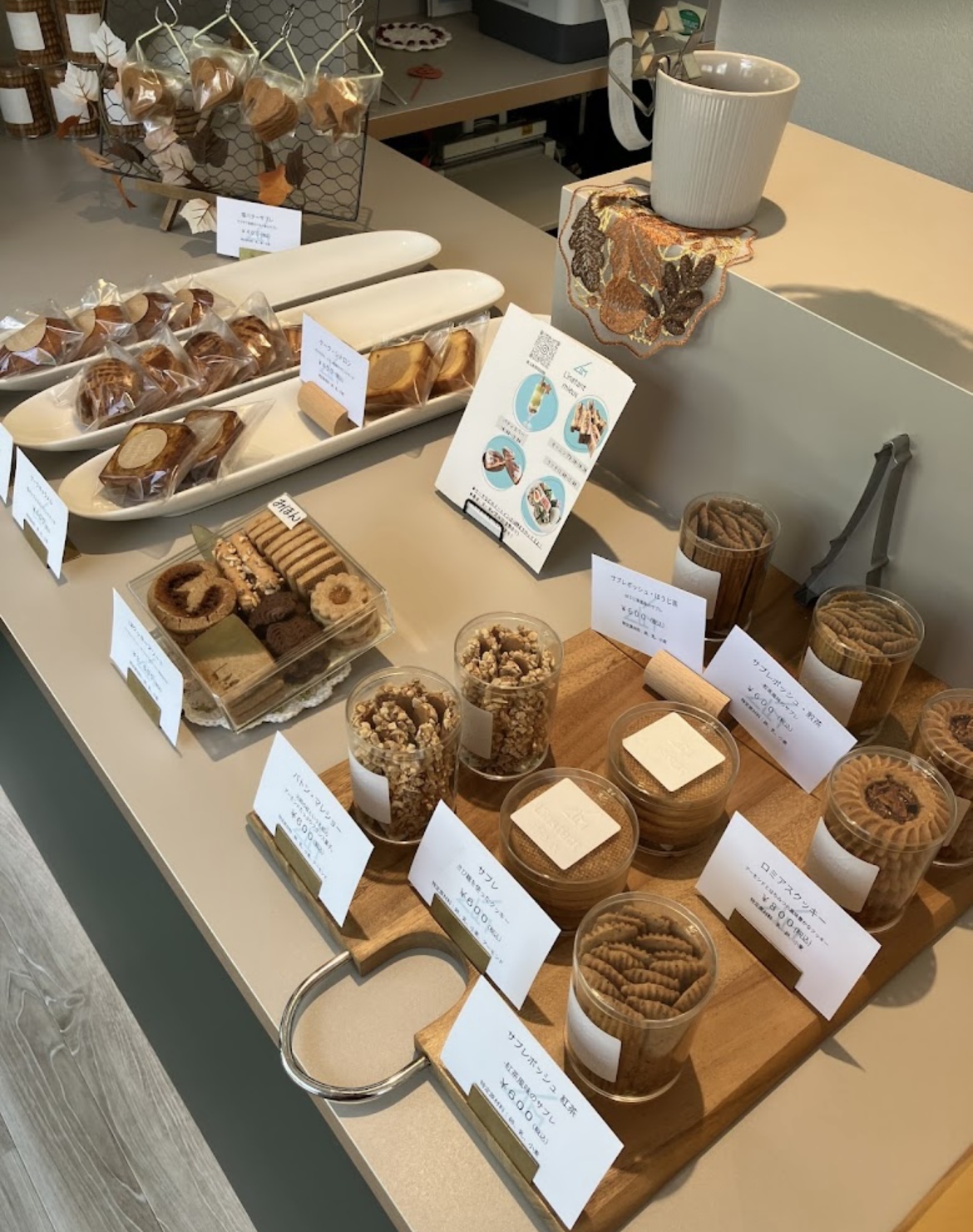 店内にずらりと並ぶ焼き菓子は、どれも朝から丁寧に焼き上げられた香り豊かな逸品。