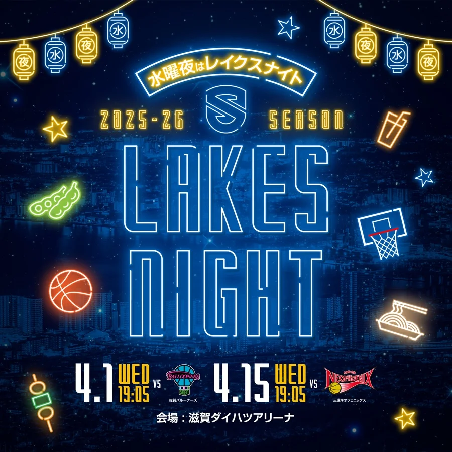 滋賀レイクスが、平日ナイトゲームをもっと楽しめる企画「LAKES NIGHT」を開催します✨