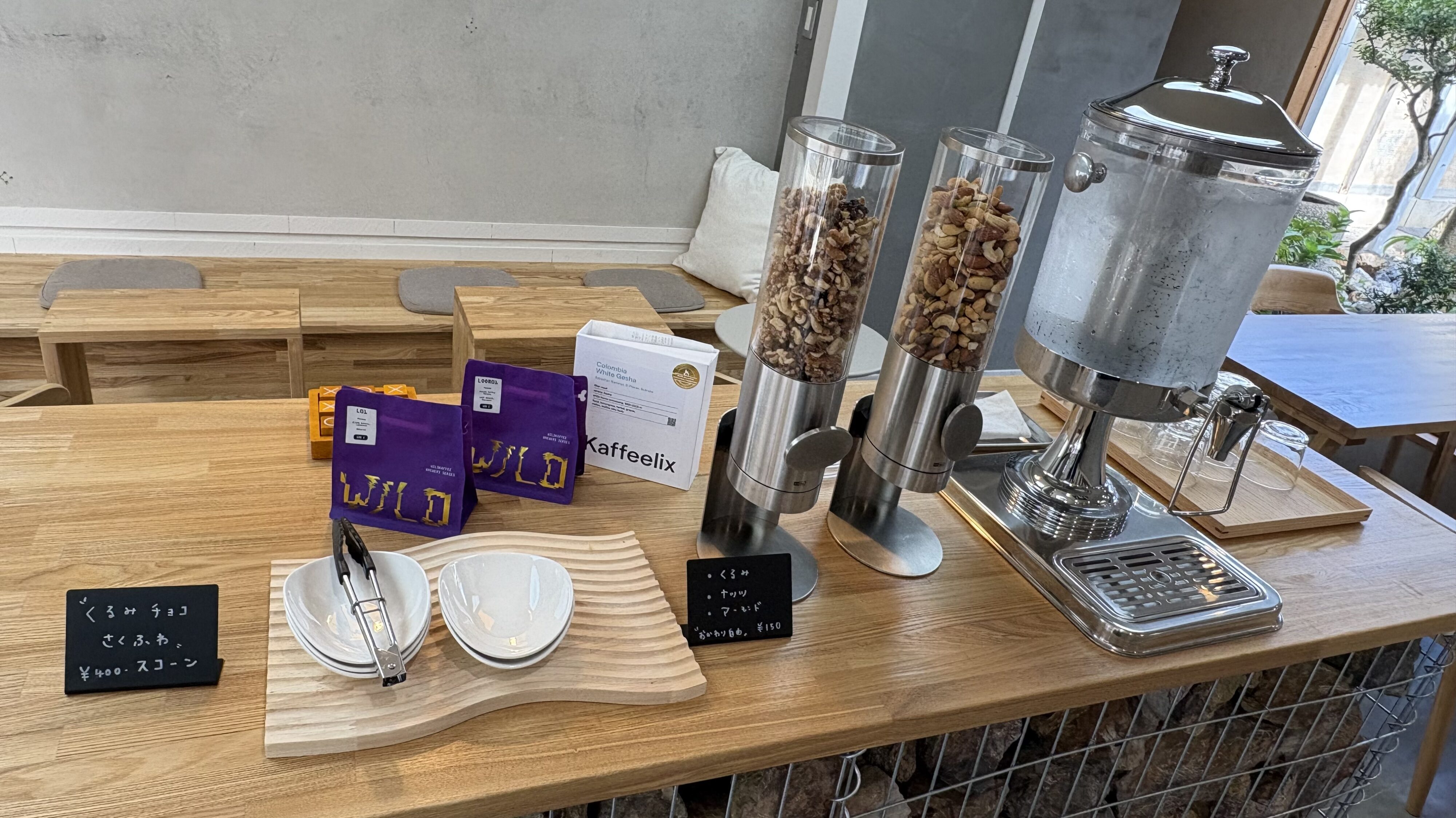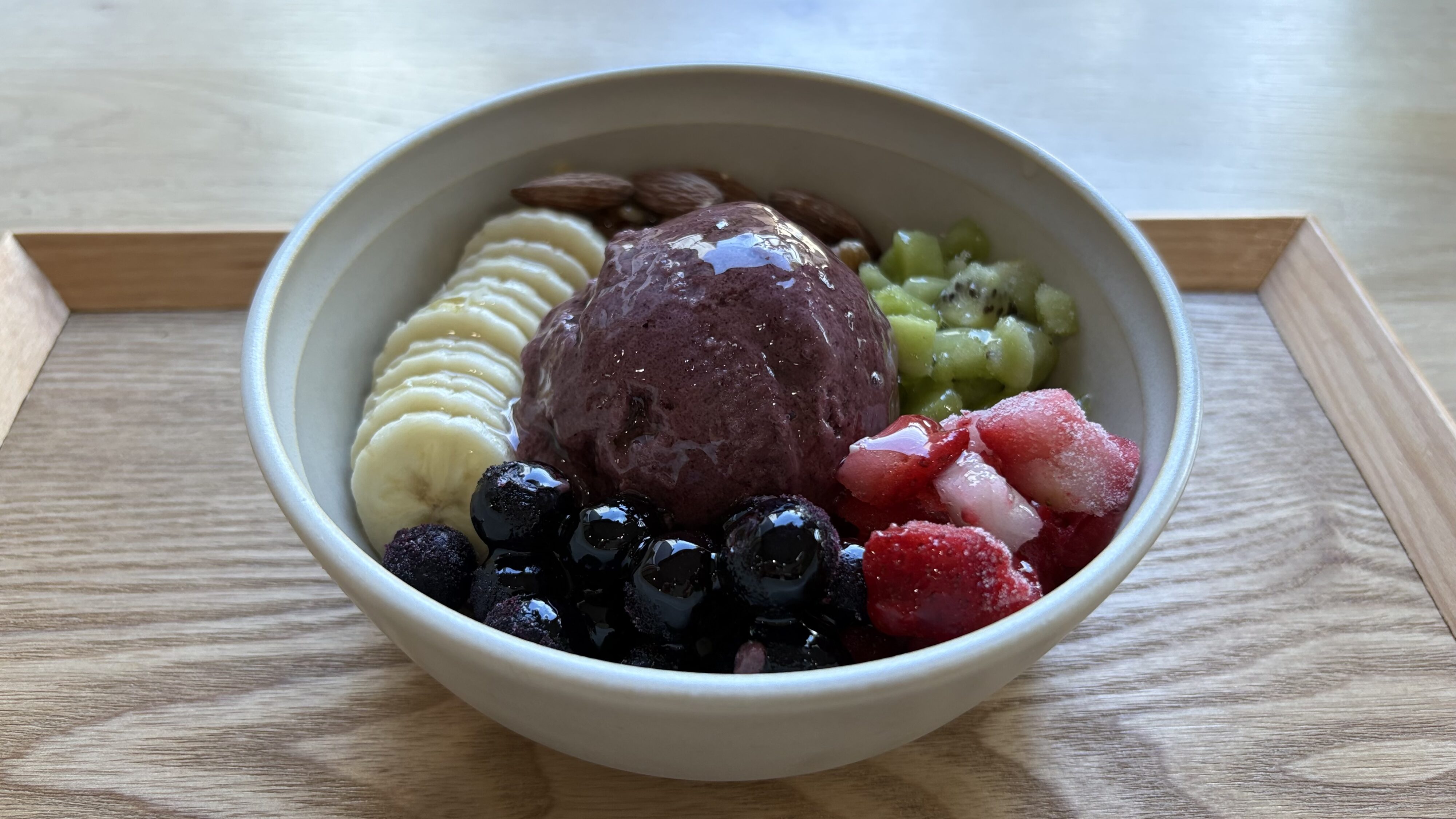 今回いただいたのは「バナナのグリークヨーグルト」「アサイーボウル」「浅煎りアメリカーノ」「バスクチーズケーキ」「ナッツ」
