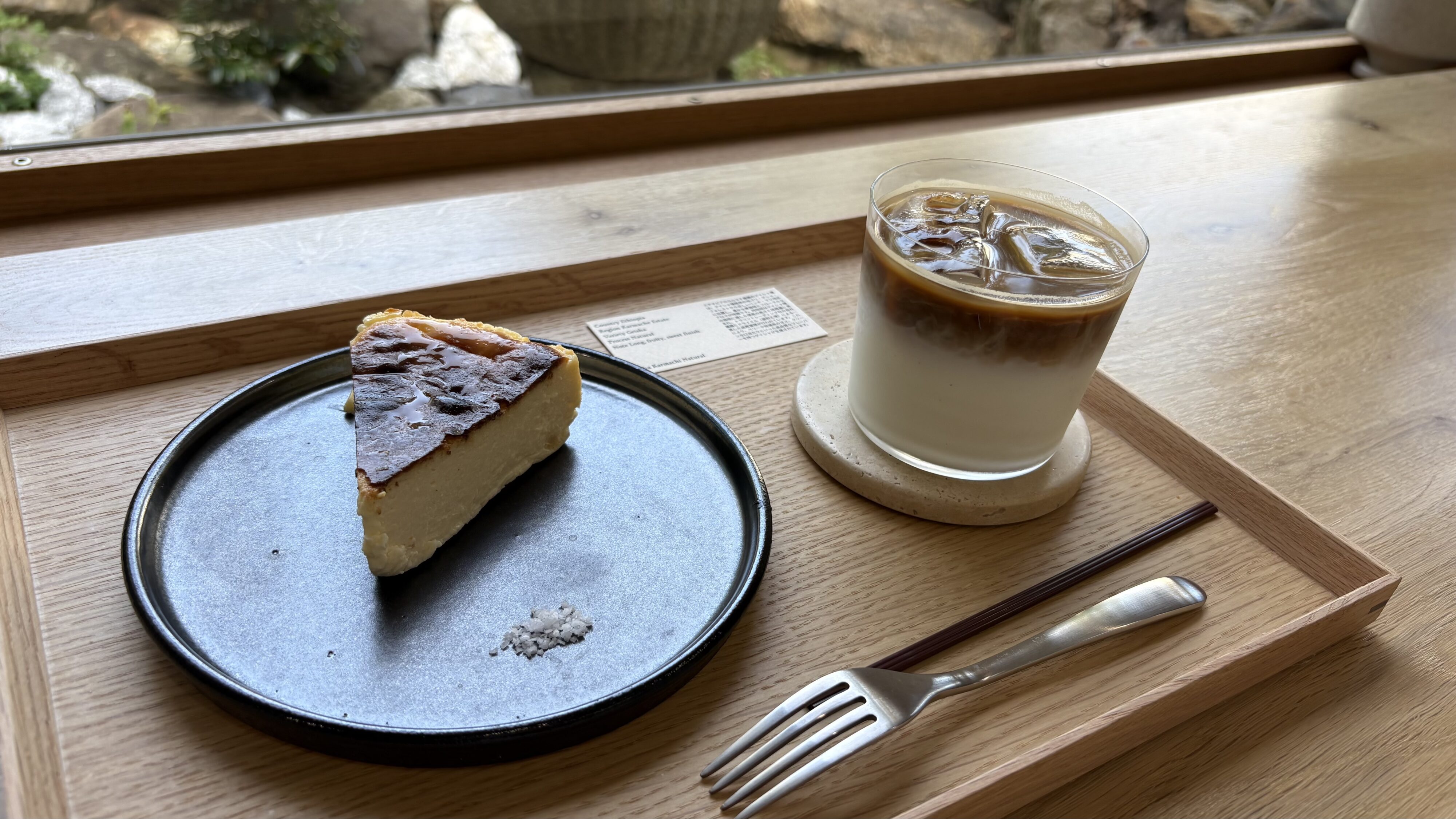 バスクチーズケーキは、とろける食感で生バスクチーズケーキという感じ。添えられているお塩がこれがまたいいアクセントに。コーヒーはミルクをたっぷり使ったまろやかなコーヒーを提供されています。豆の挽き加減は、信頼する珈琲ショップにオーダーして調達するという徹底したこだわり。
