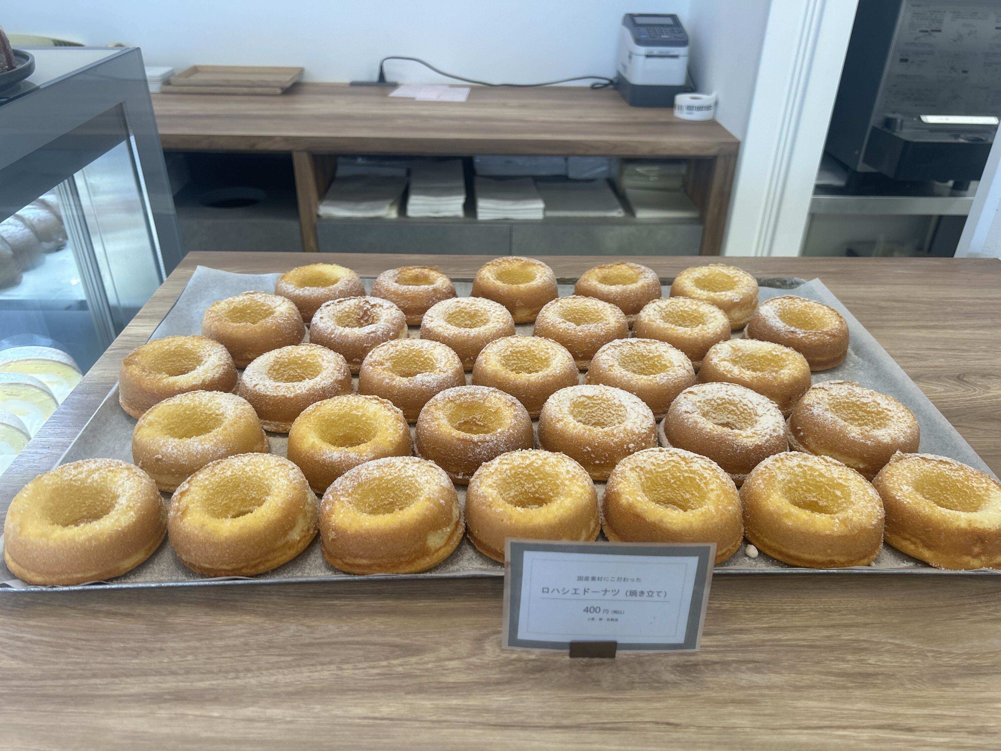 ロハシエドーナツはお店の看板商品。今回は焼き立てを購入しました。