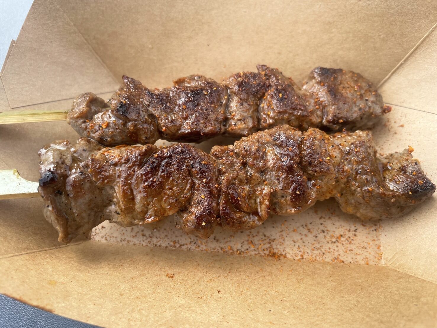 がっつり肉グルメ好きは絶対チェック!人気のハラミ丼は行列覚悟!!他にも牛串、唐揚げ、アメリカンドッグとボリューム満点なメニューが勢揃い!