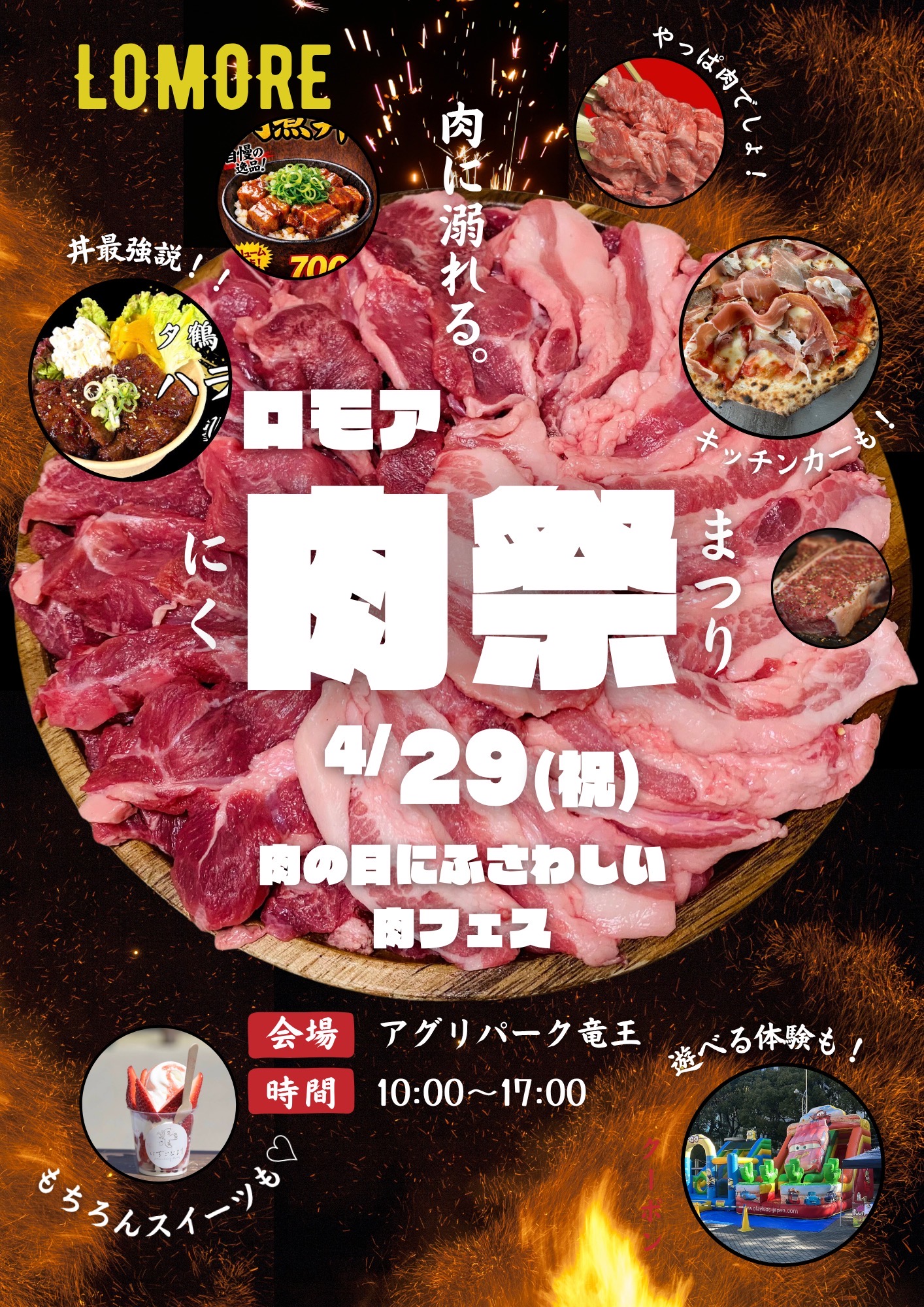4/29は肉に溺れろ!ロモアキッチンカーフェス in アグリパーク竜王