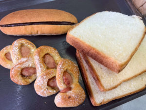 真ん中の人型はクッキー。そして左右のスプーンとフォークは、丸二果実店で作られているドライフルーツになります。