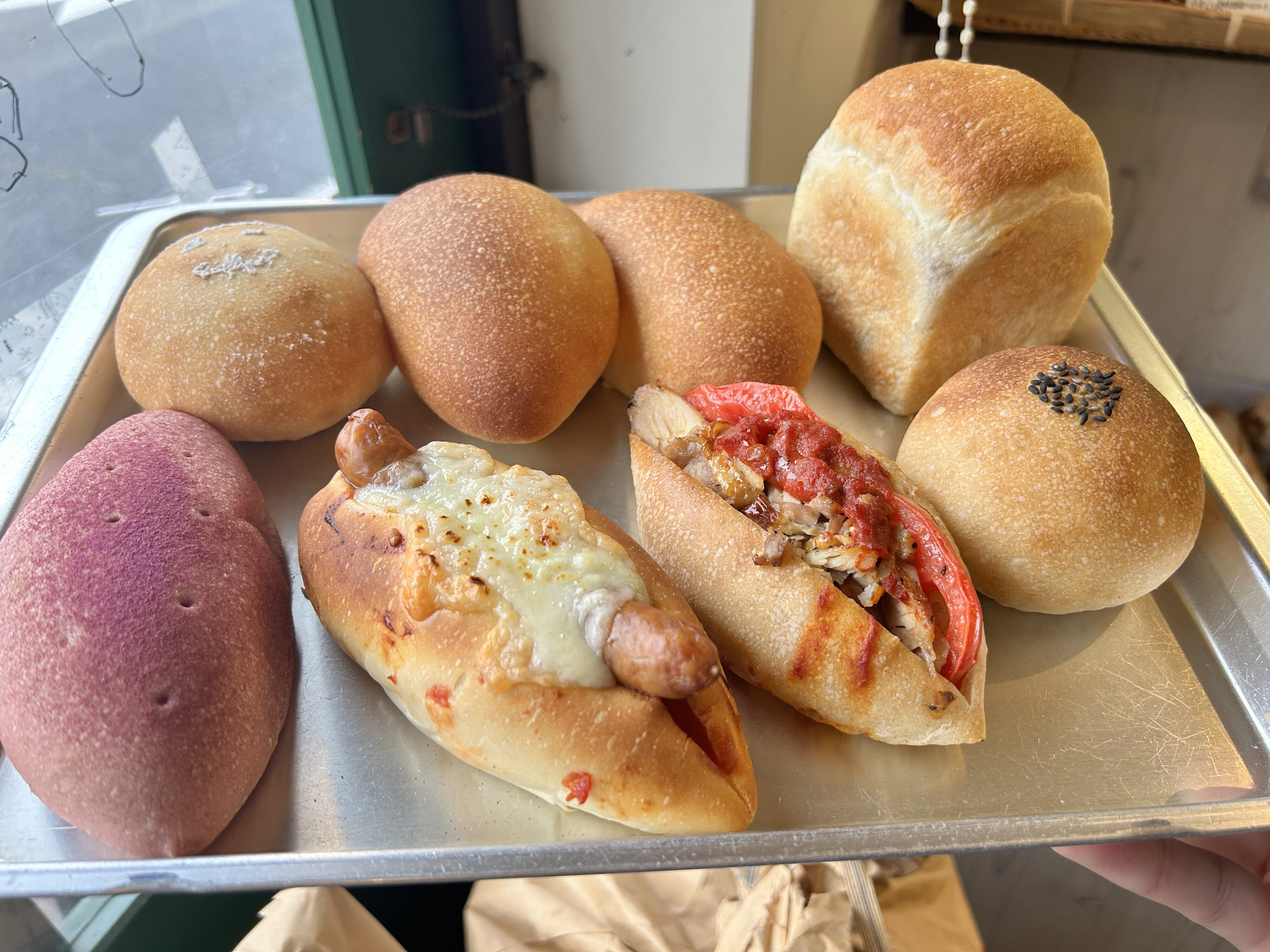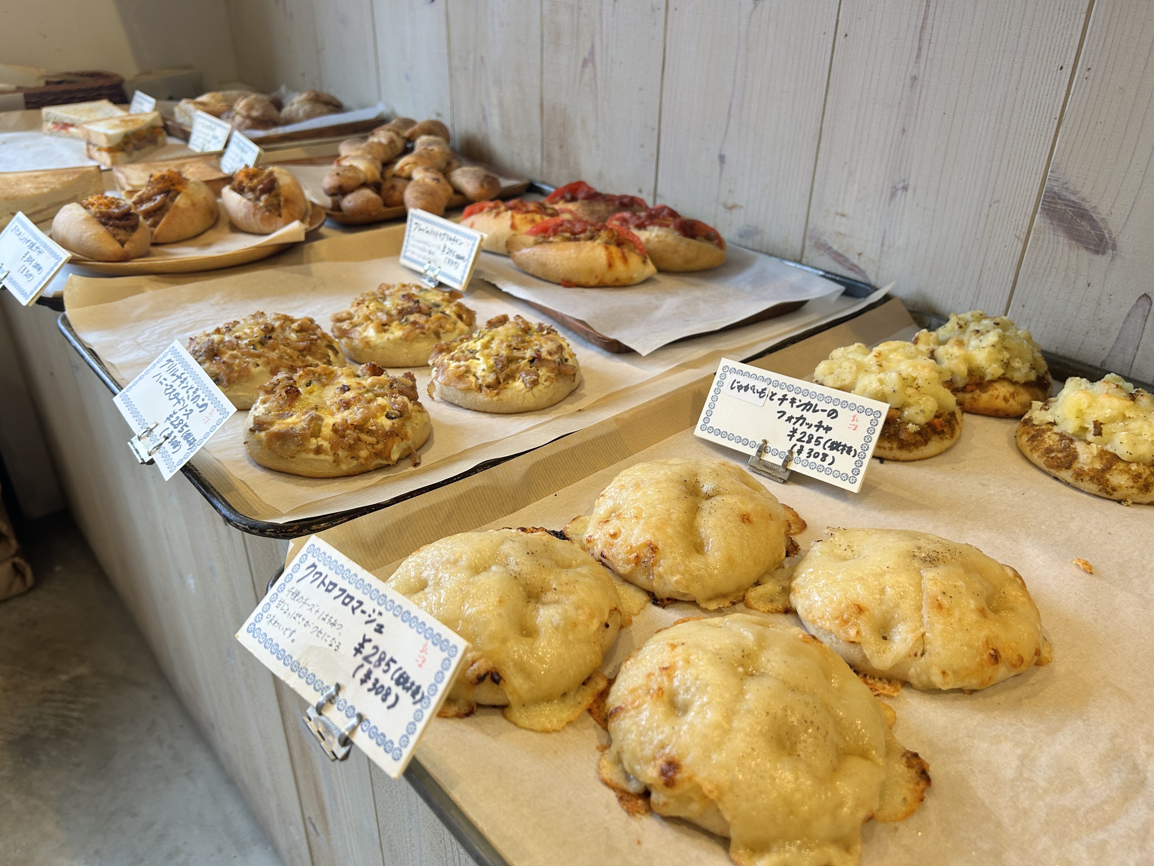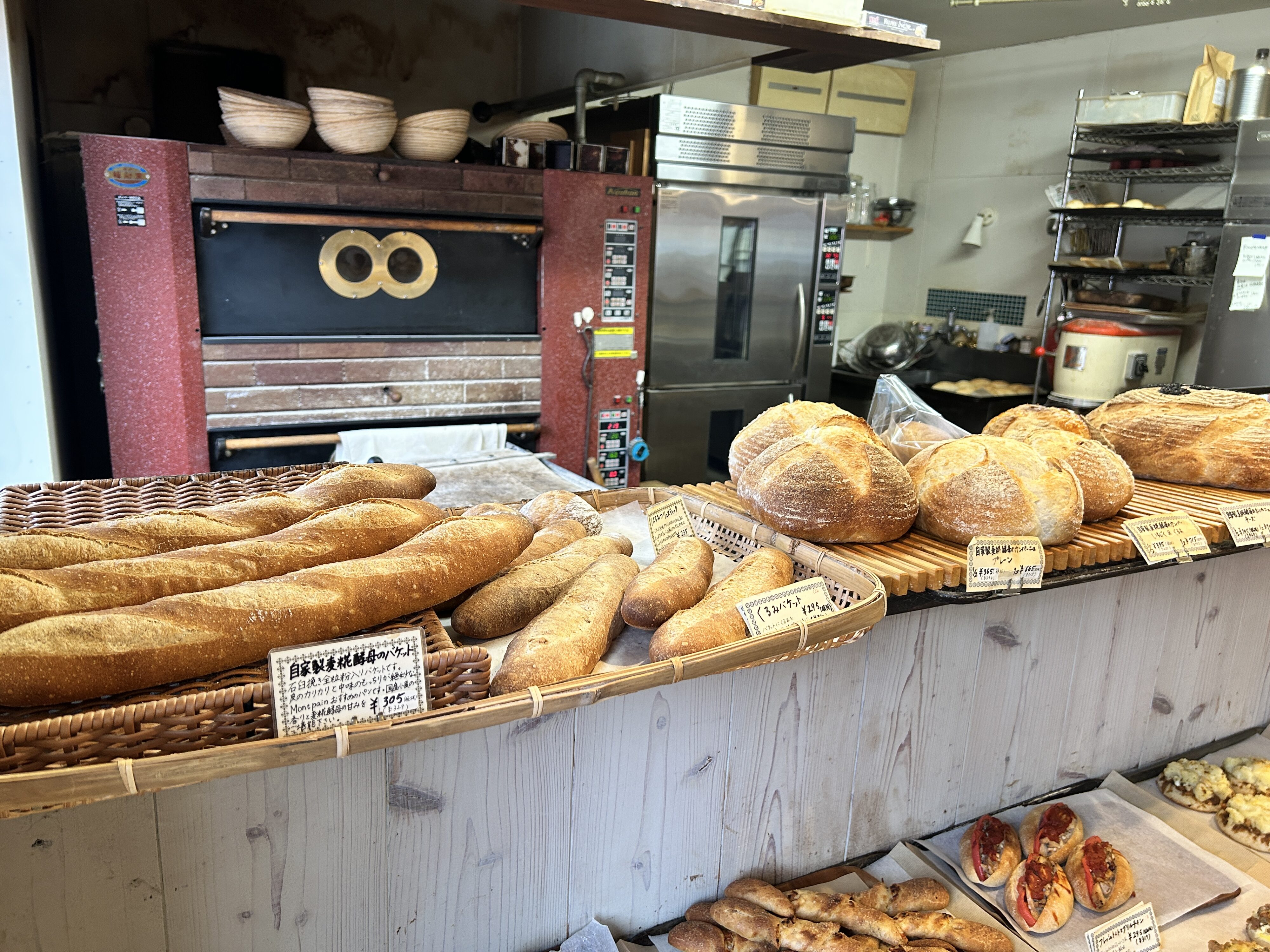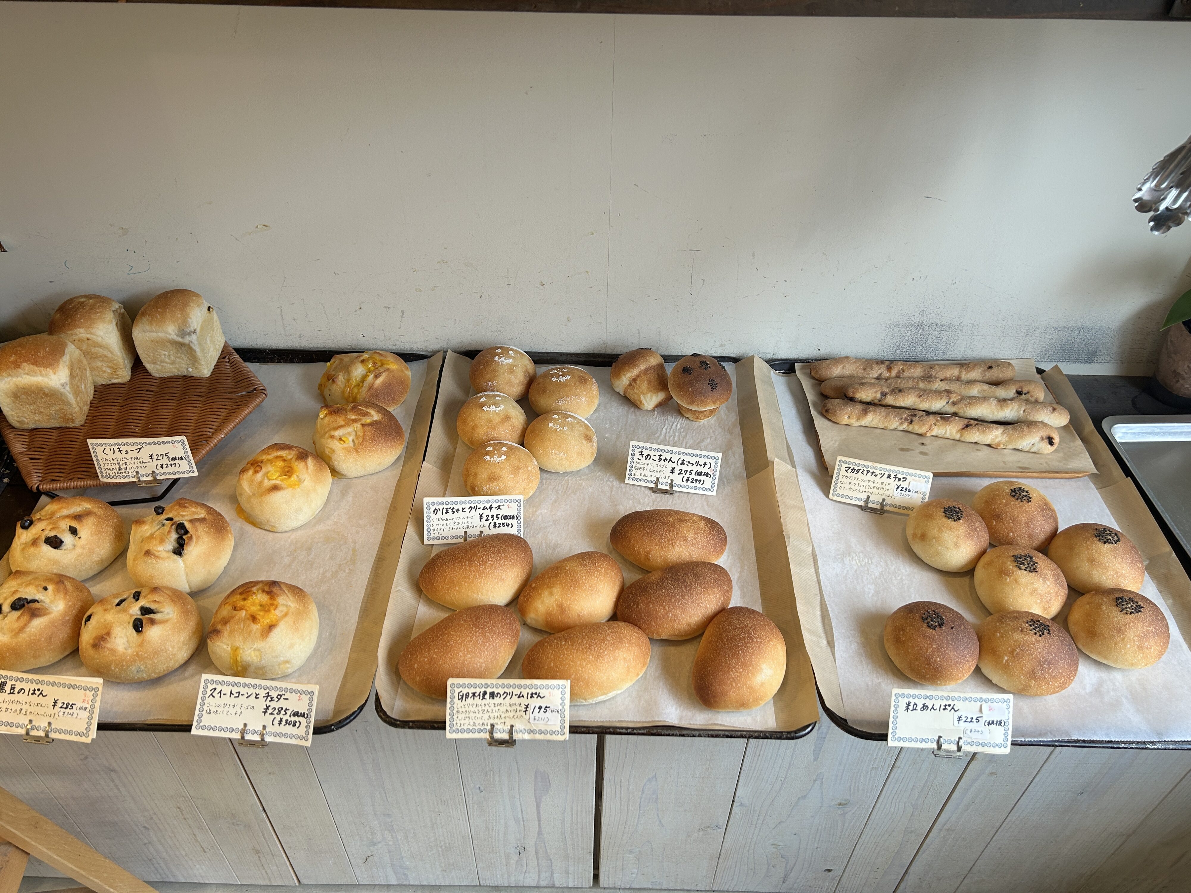 店内には焼きたてパンがずらりと並び、国産小麦を100%使用した生地はどれも香り高く、扉を開けた瞬間からふわっと香ばしい匂いが広がります。卵や保存料、着色料を使わないシンプルな素材で作られていて、小さな子供から大人まで安心して食べられるパンが揃います☺️