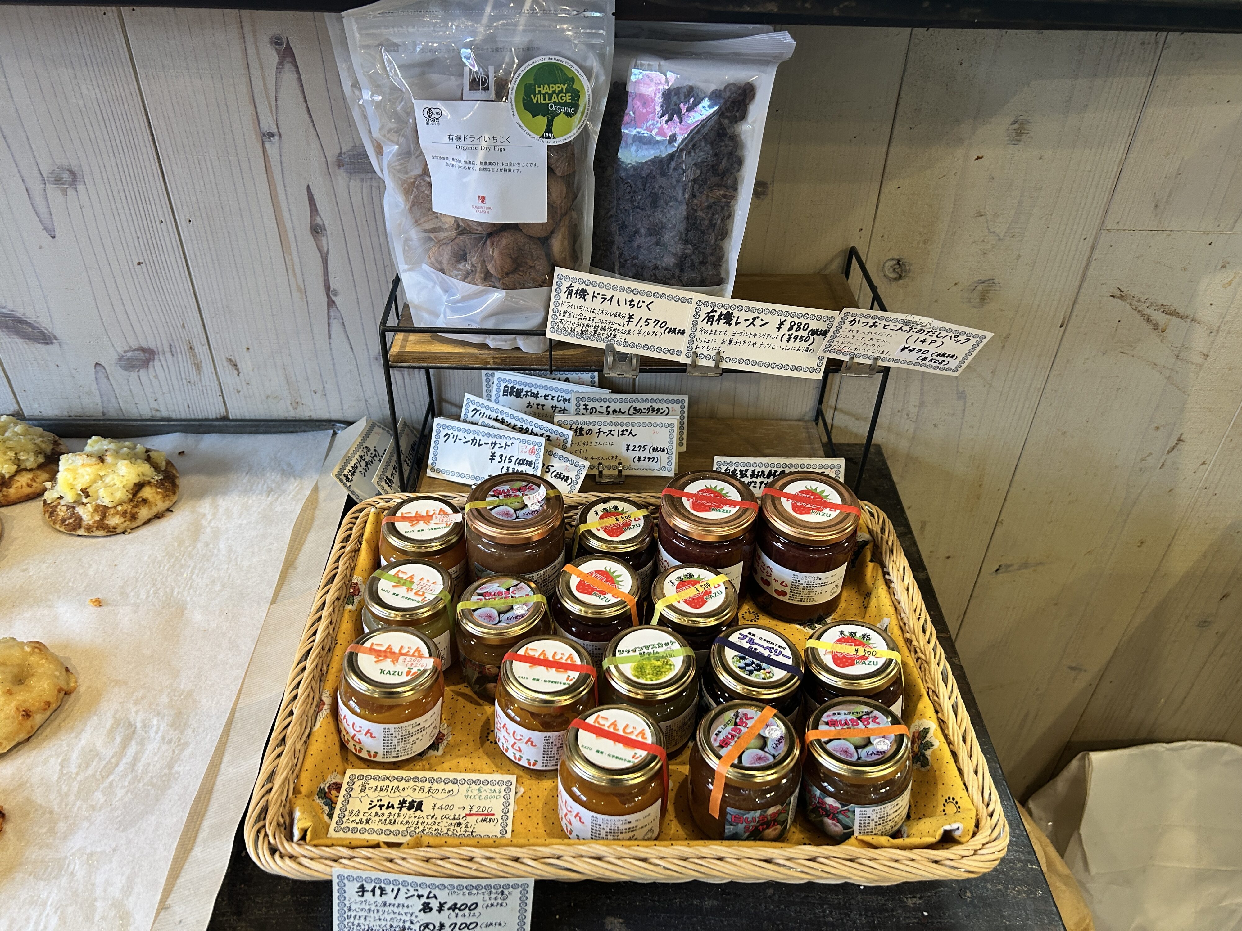 有機ドライフルーツや手作りジャムも並び、パンと合わせてお土産にもピッタリです♪