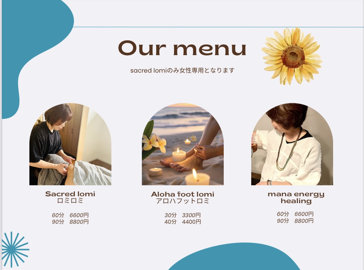 日々の忙しさやストレスで疲れた心と体に、特別な癒しのひとときを。「ナナラ」では波のように優しく流れるロミロミと、心の奥深くまで届くエネルギーヒーリングであなたの本来のバランスと輝きを取り戻すお手伝いをしてくれます✨
