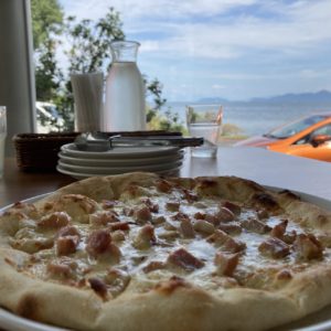 店内から見える景色。木々が邪魔であいにく琵琶湖はチラッとしか見えないのですが、それでもめちゃくちゃ綺麗です。