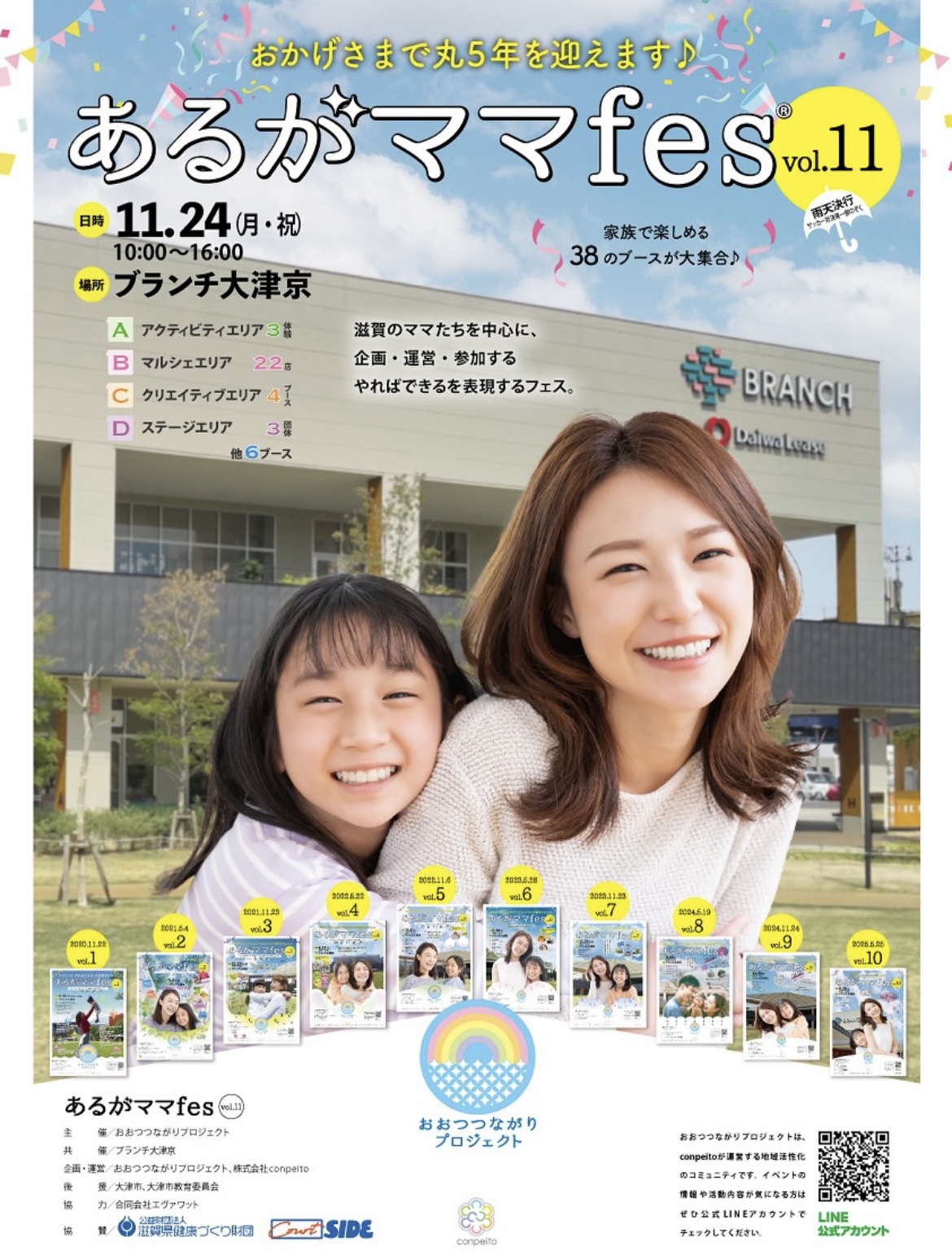 滋賀のママさんたちが中心となって企画・運営する人気イベント「あるがママfes」が2025年11月24日(月・祝)にブランチ大津京で開催!今年で丸5年を迎える節目の年となり、さらにパワーアップした内容で帰ってきます✨