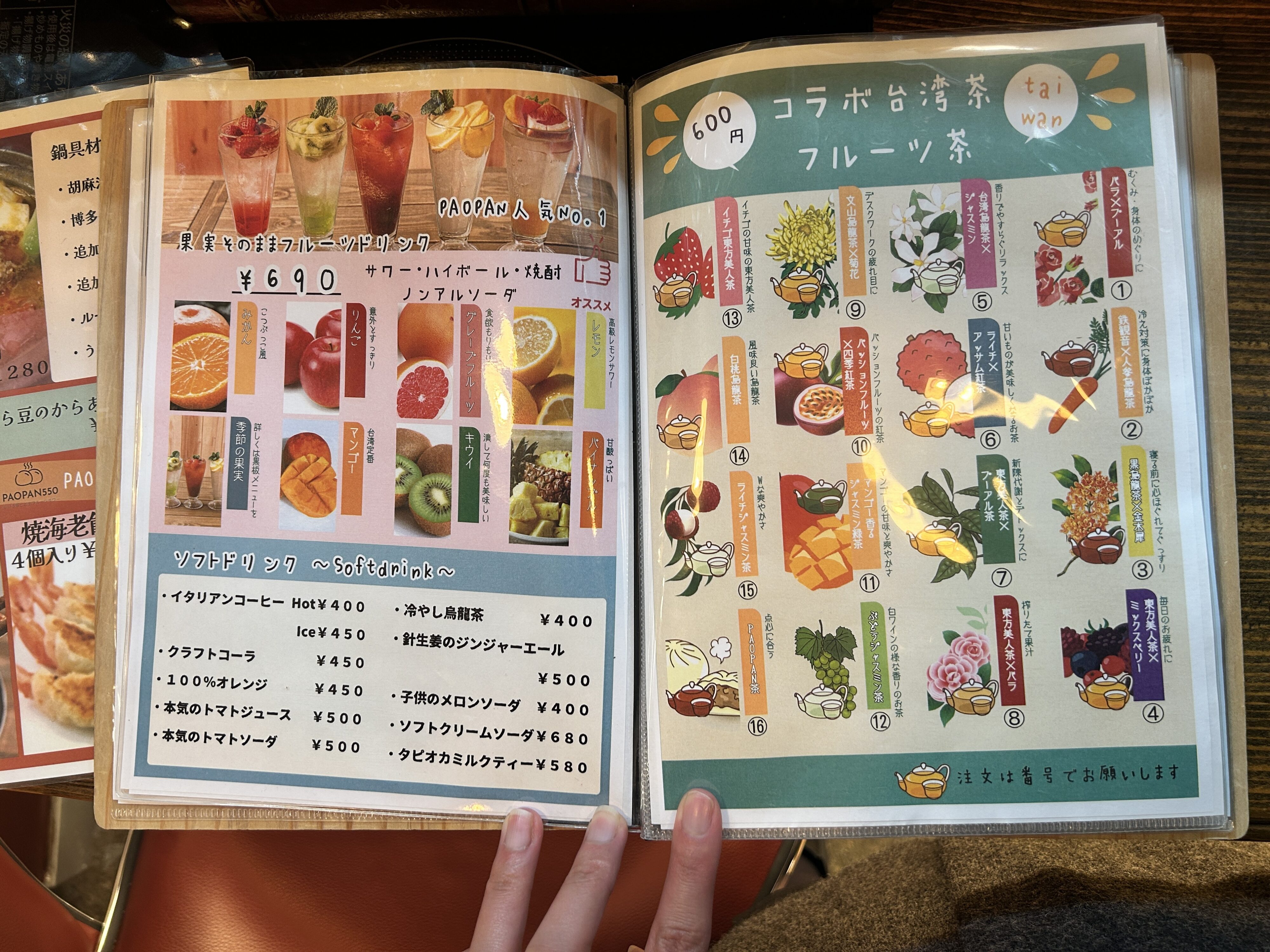 ドリンクも種類豊富で果実そのままのドリンクや台湾茶のフルーツティーなど目移りしてしまうほどの数!