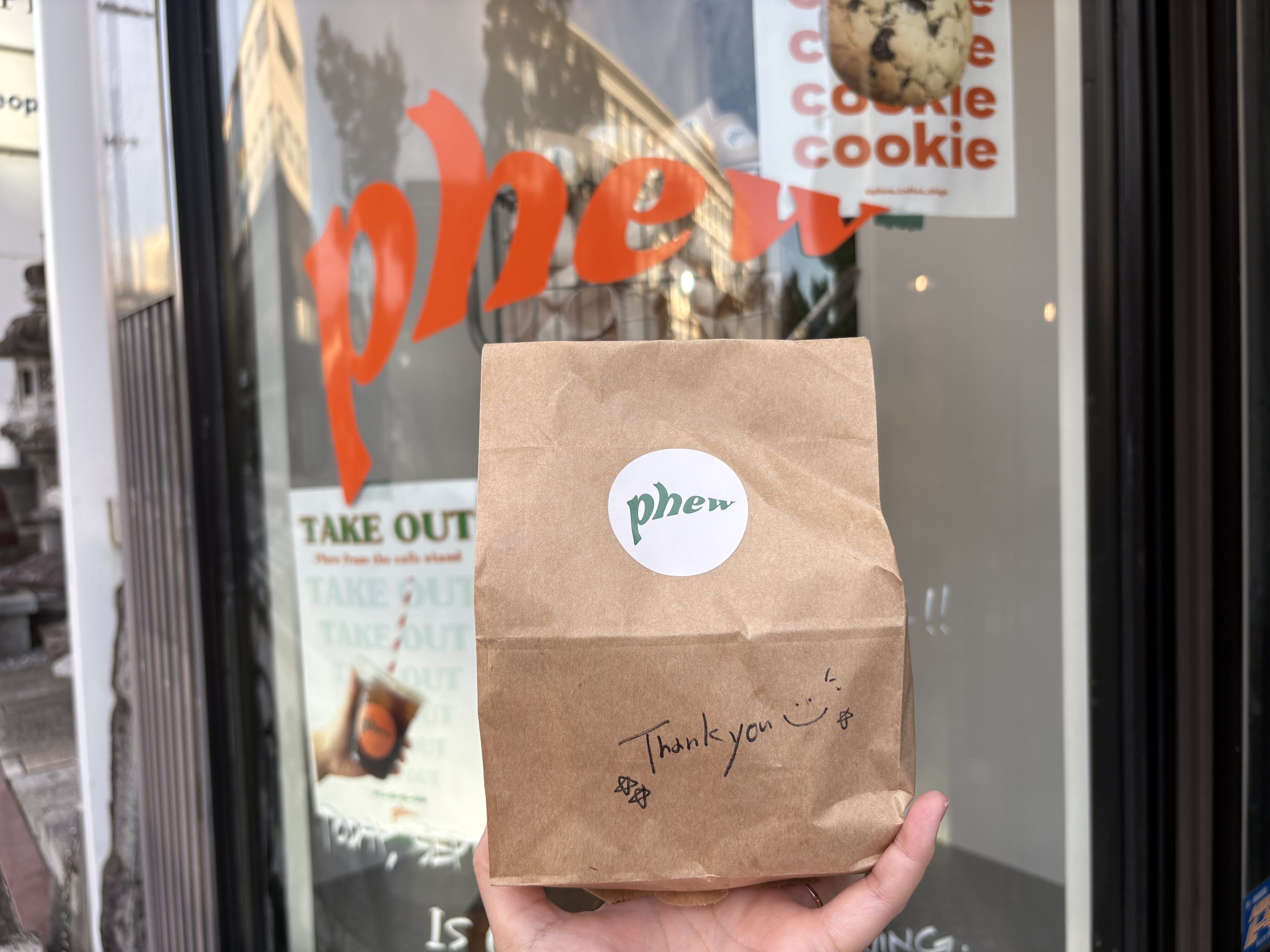彦根駅から徒歩圏内にある「Phew(フュー)」は昨年オープンした6.5坪の小さなコーヒー&チャンククッキースタンド。