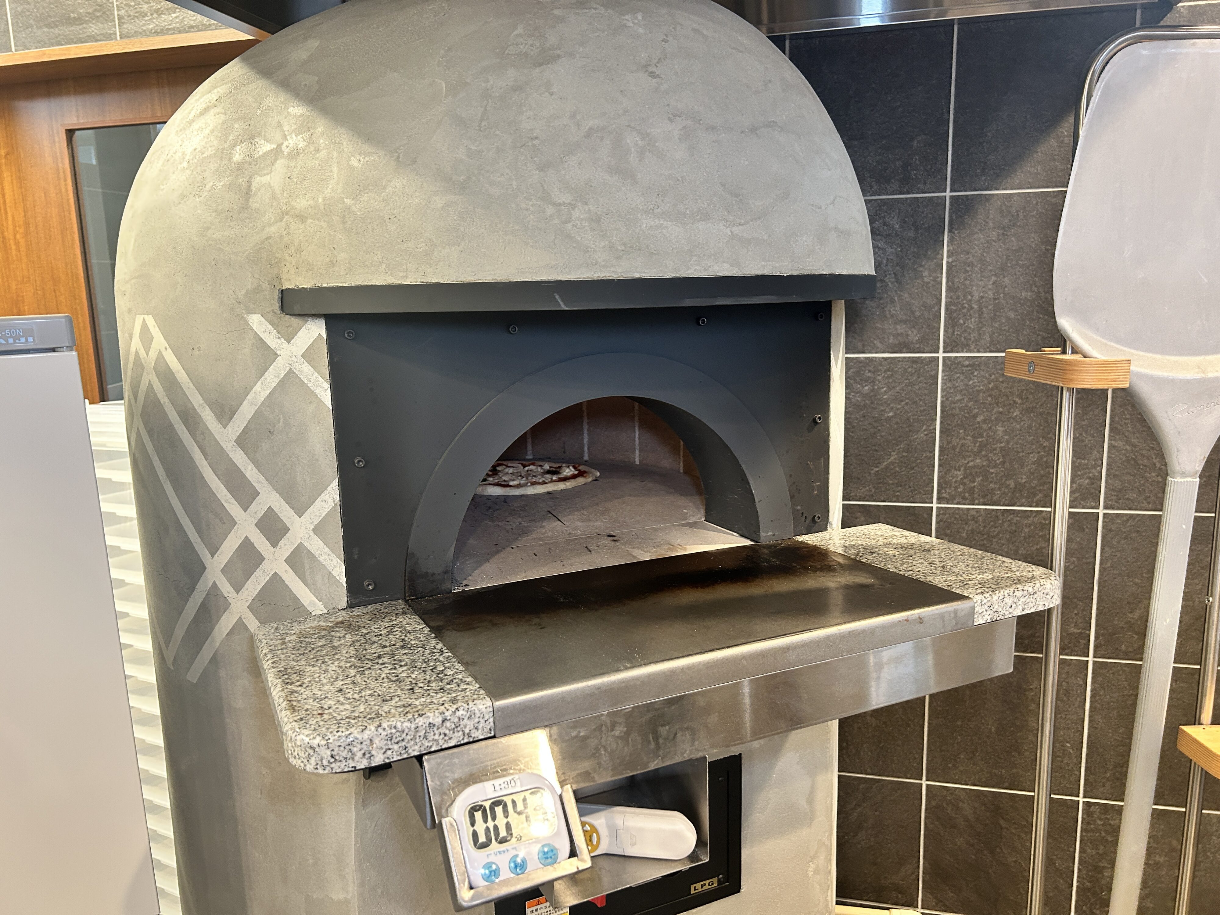 店内の大きなピザ窯で一気に焼き上げる本格派。外は香ばしく、中はもちもち。
