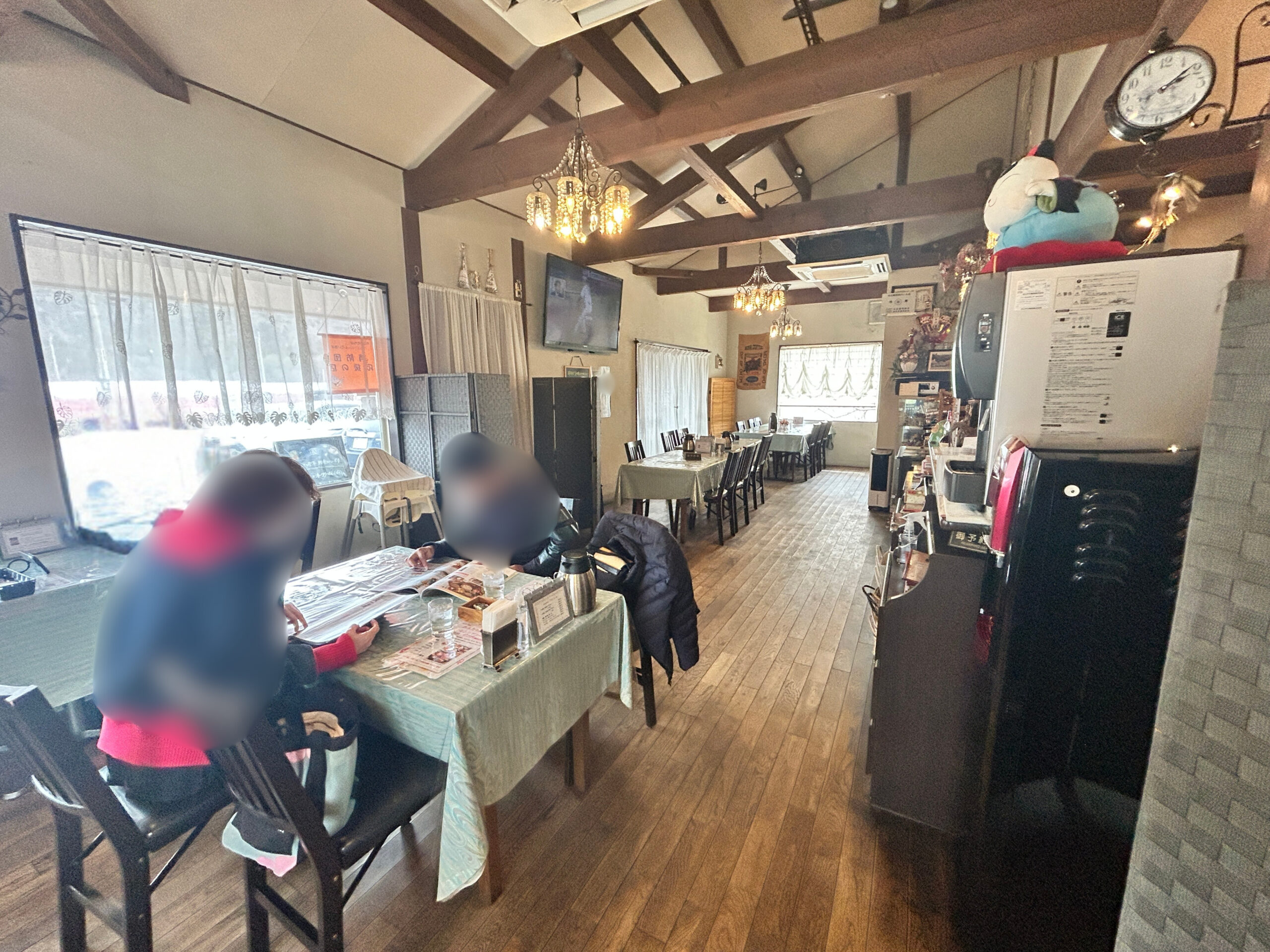 店内は木の温もりがある、昔ながらの喫茶店っぽい落ち着いた空間です。シャンデリアのやわらかい光もあって、ゆっくり過ごせる居心地の良さ。 この日は昼前に伺いましたが、すでに数組のお客さんがいて人気店なのも納得!