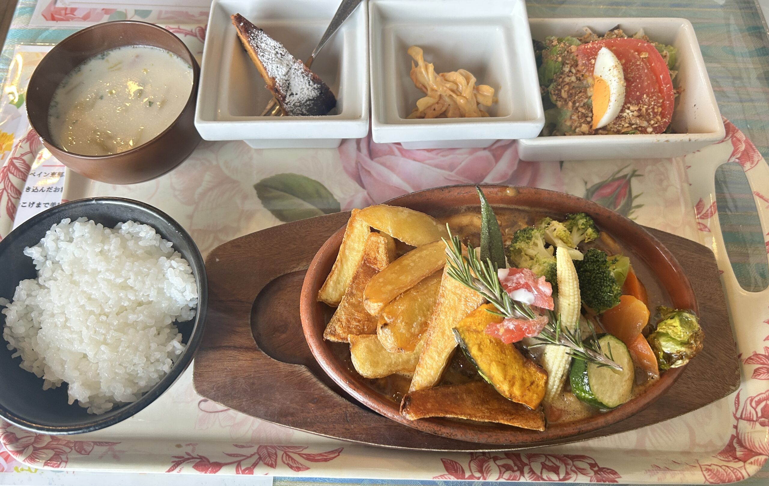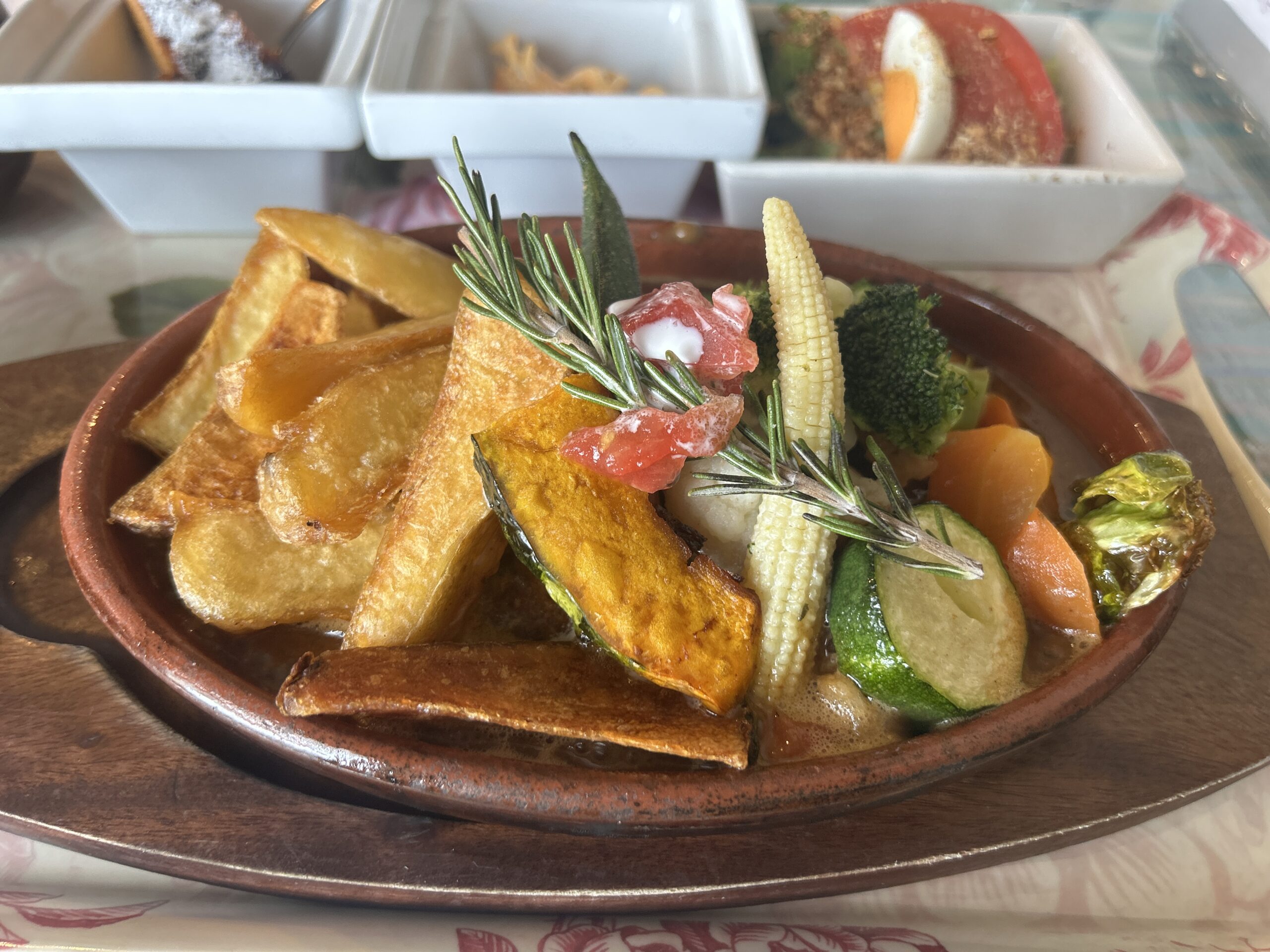 かぼちゃ、ズッキーニ、ヤングコーン、ブロッコリーなど色とりどりで、さらにポテトまで乗っていてボリューム満点!