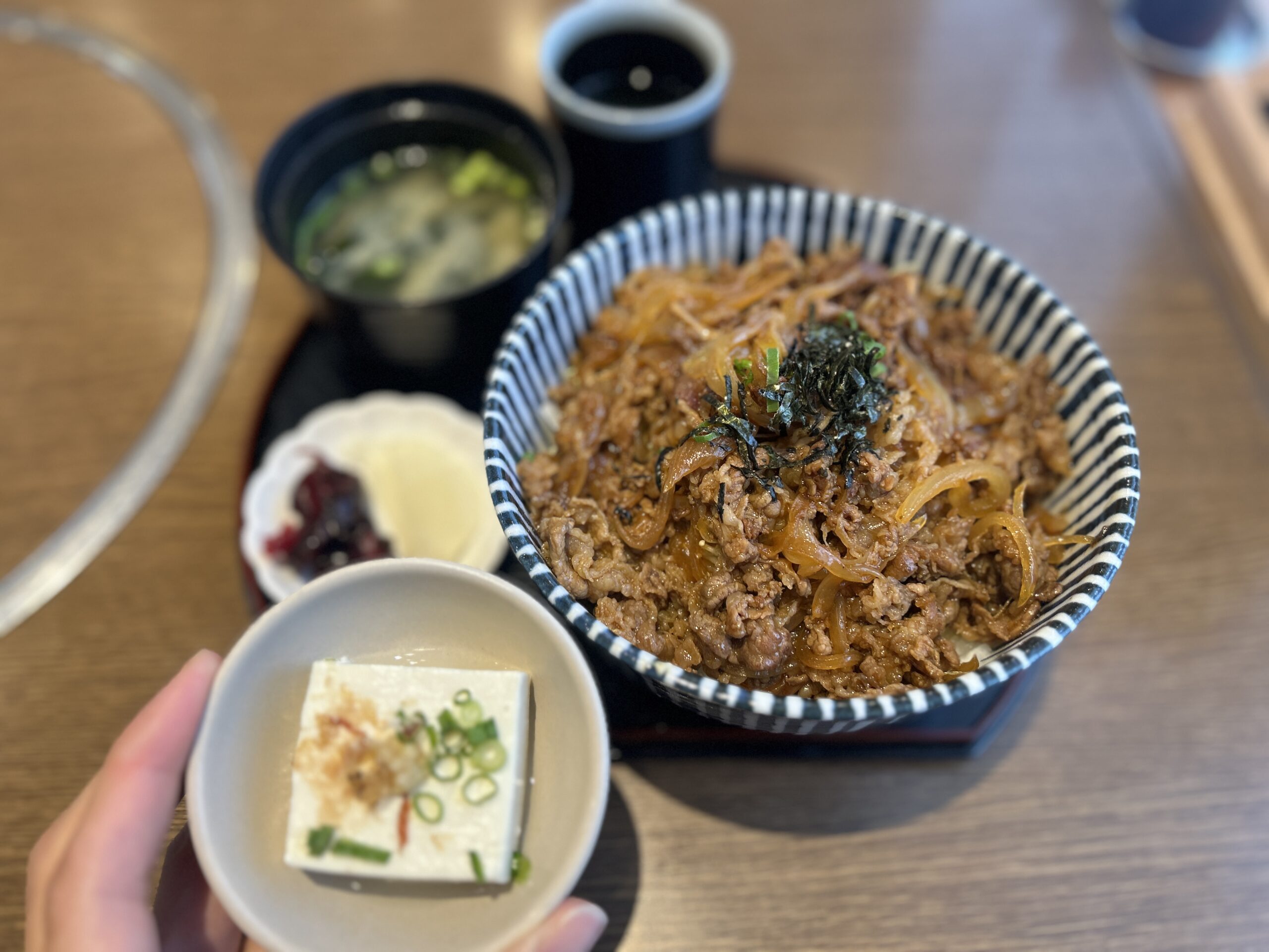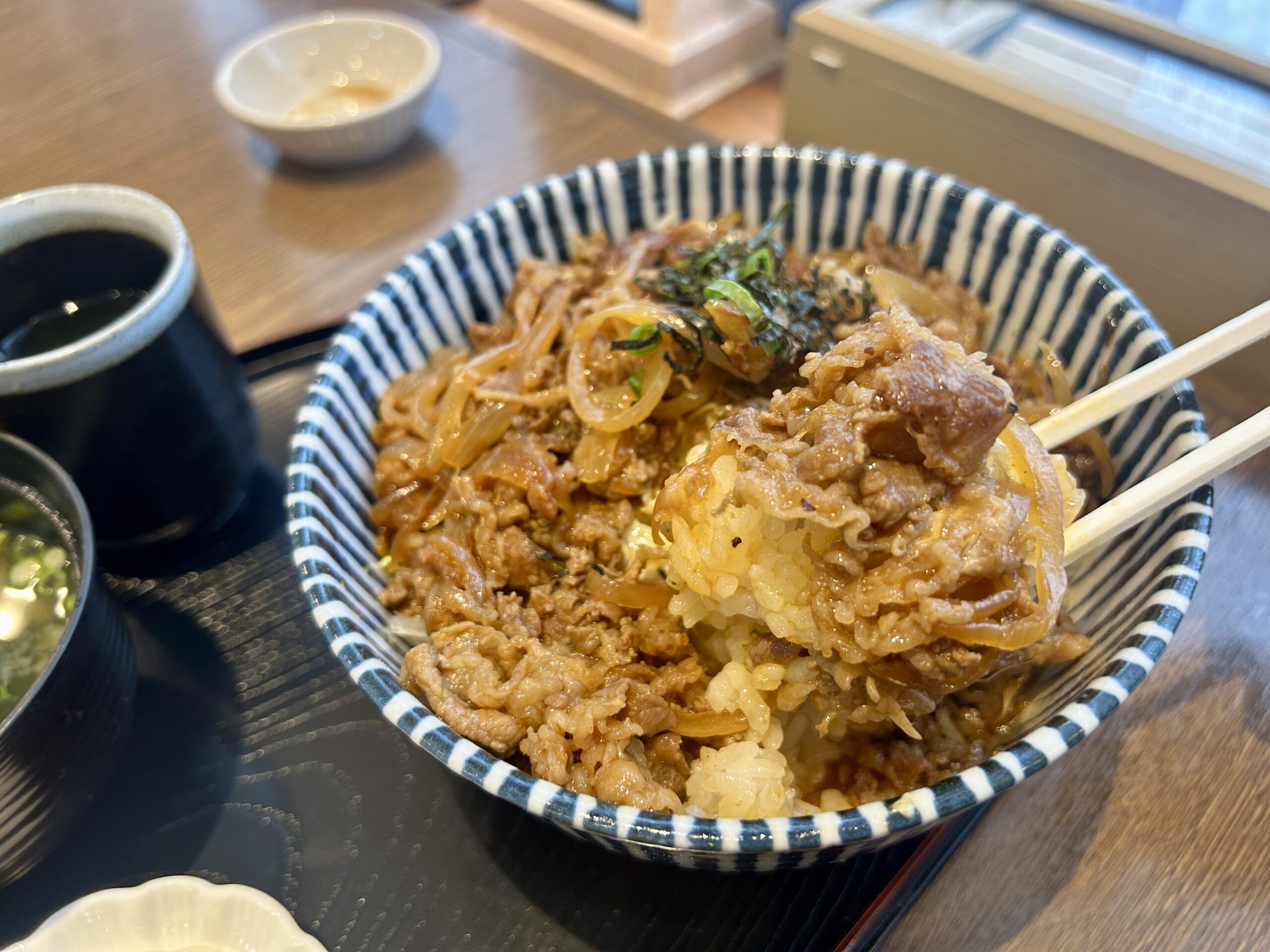 まず目に入るのは、丼いっぱいに広がる牛肉。想像以上にしっかり量があって、見た瞬間に「これは勝ち確」と思えるビジュアル🔥