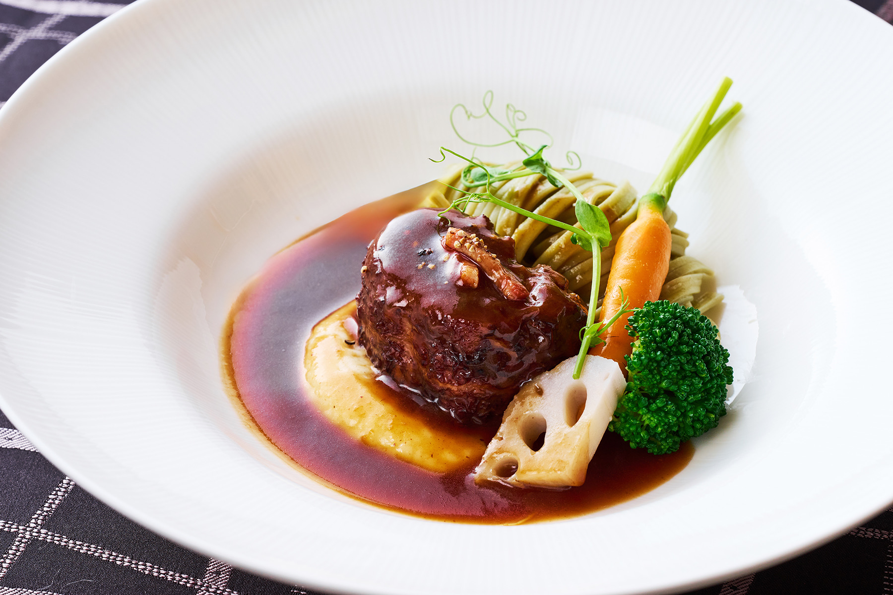 ・若鶏もも肉の赤ワイン煮込み 法蓮草のヌイユ(1,900円)