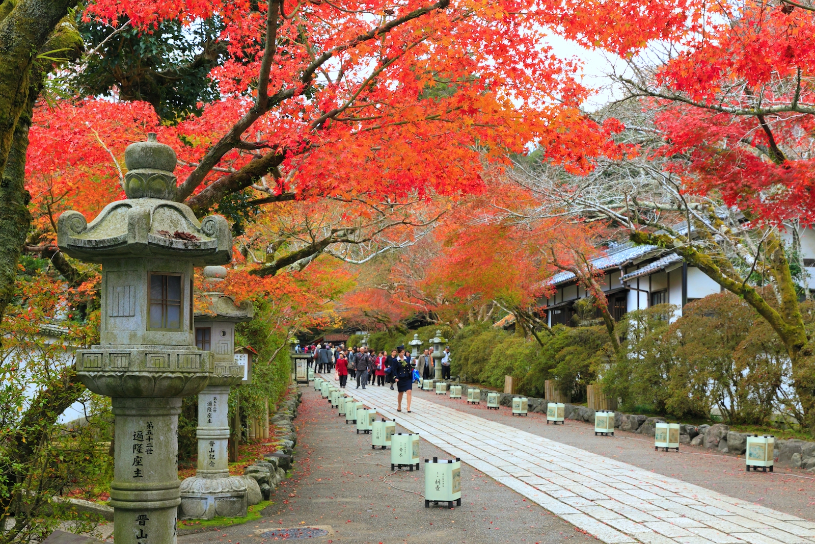 3つの古刹をめぐる”紅葉さんぽ”が人気。苔むした石段と紅葉のコントラストが美しく、落ち着いた雰囲気。