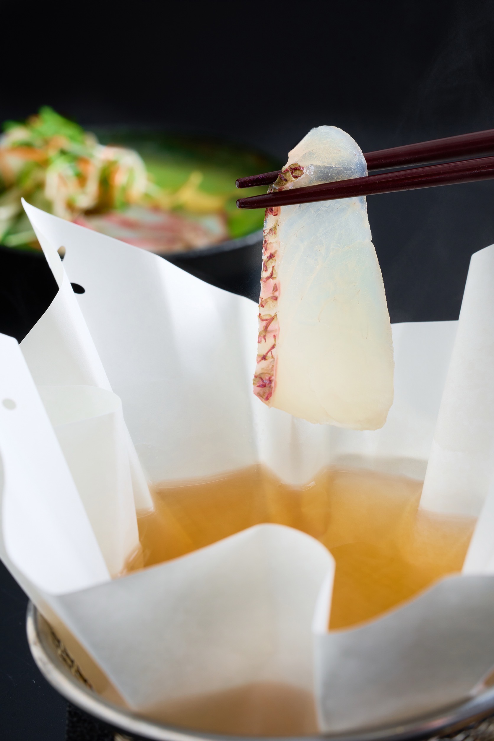 山﨑真鯛を特製出汁でしゃぶしゃぶして食べる「鯛しゃぶコース」はお店の看板メニューです✨