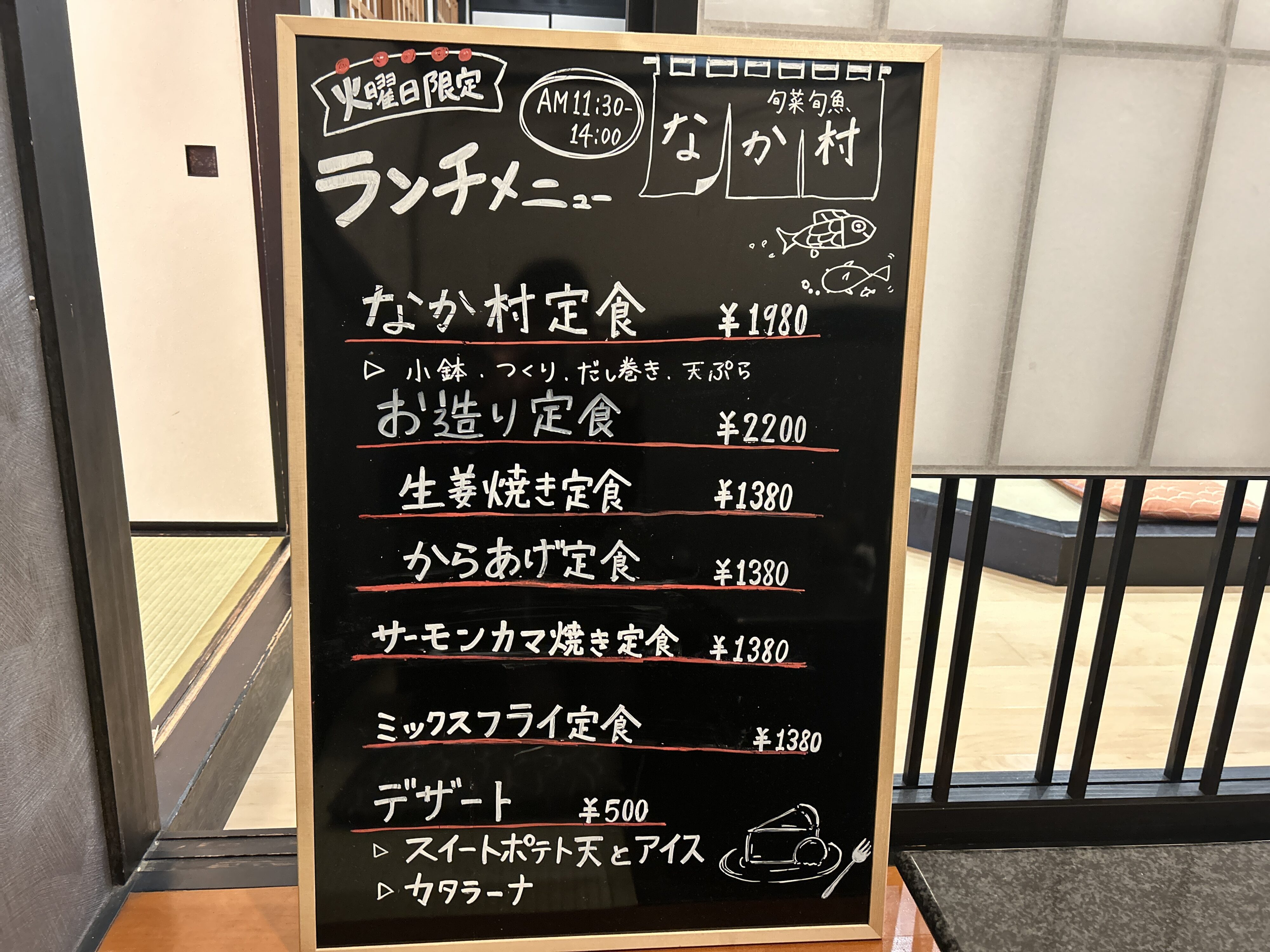 どれにしようか悩みましたが、お店の名前がついた「なか村定食(1,980円税込)」を注文!