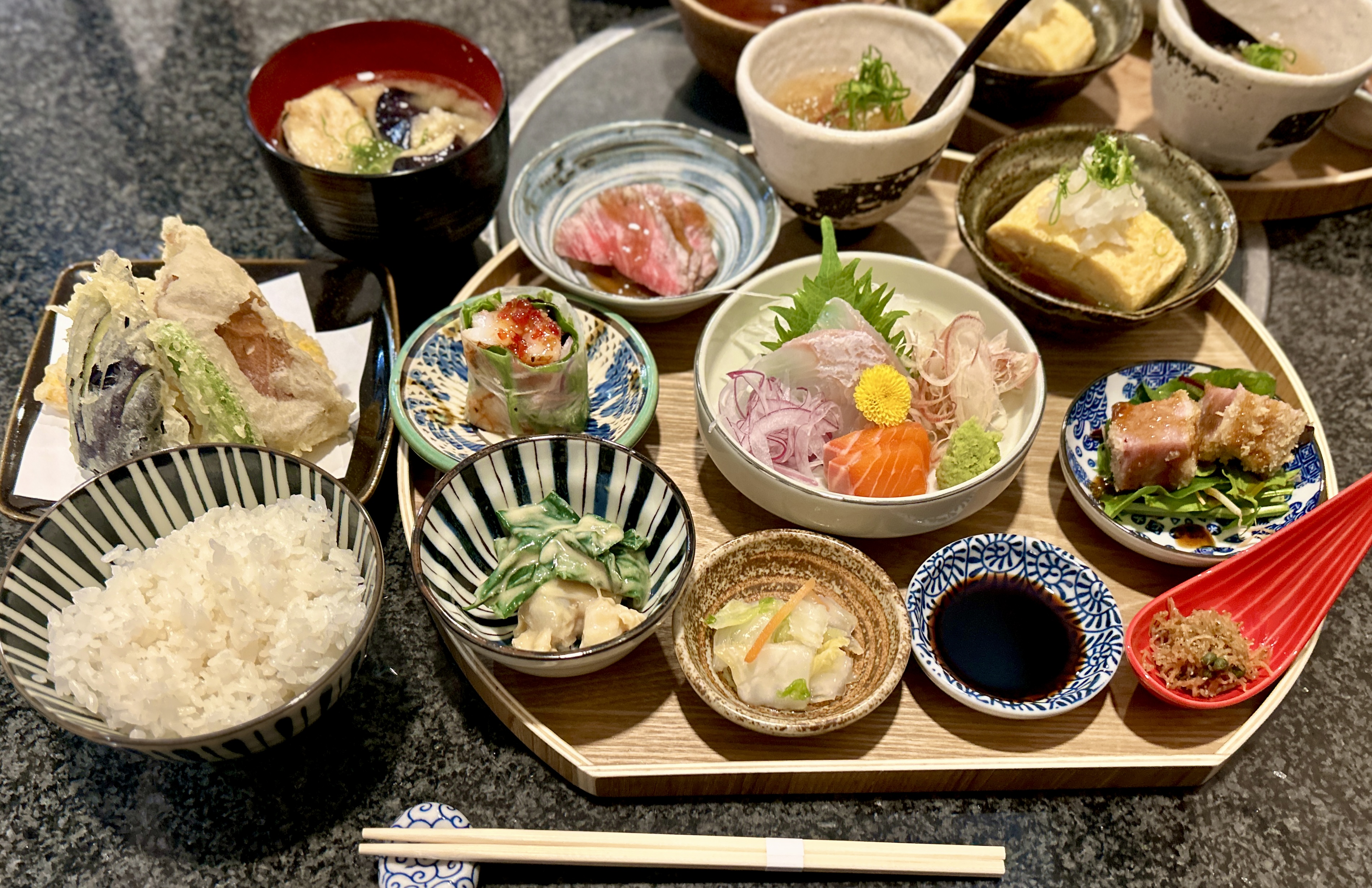 お造りに天ぷら、だし巻き、小鉢がずらりと並び、見た目もかなり映えます✨