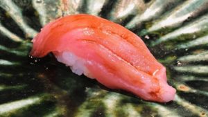 こちらは鮪赤身!しゃりには赤しそがかかっています。