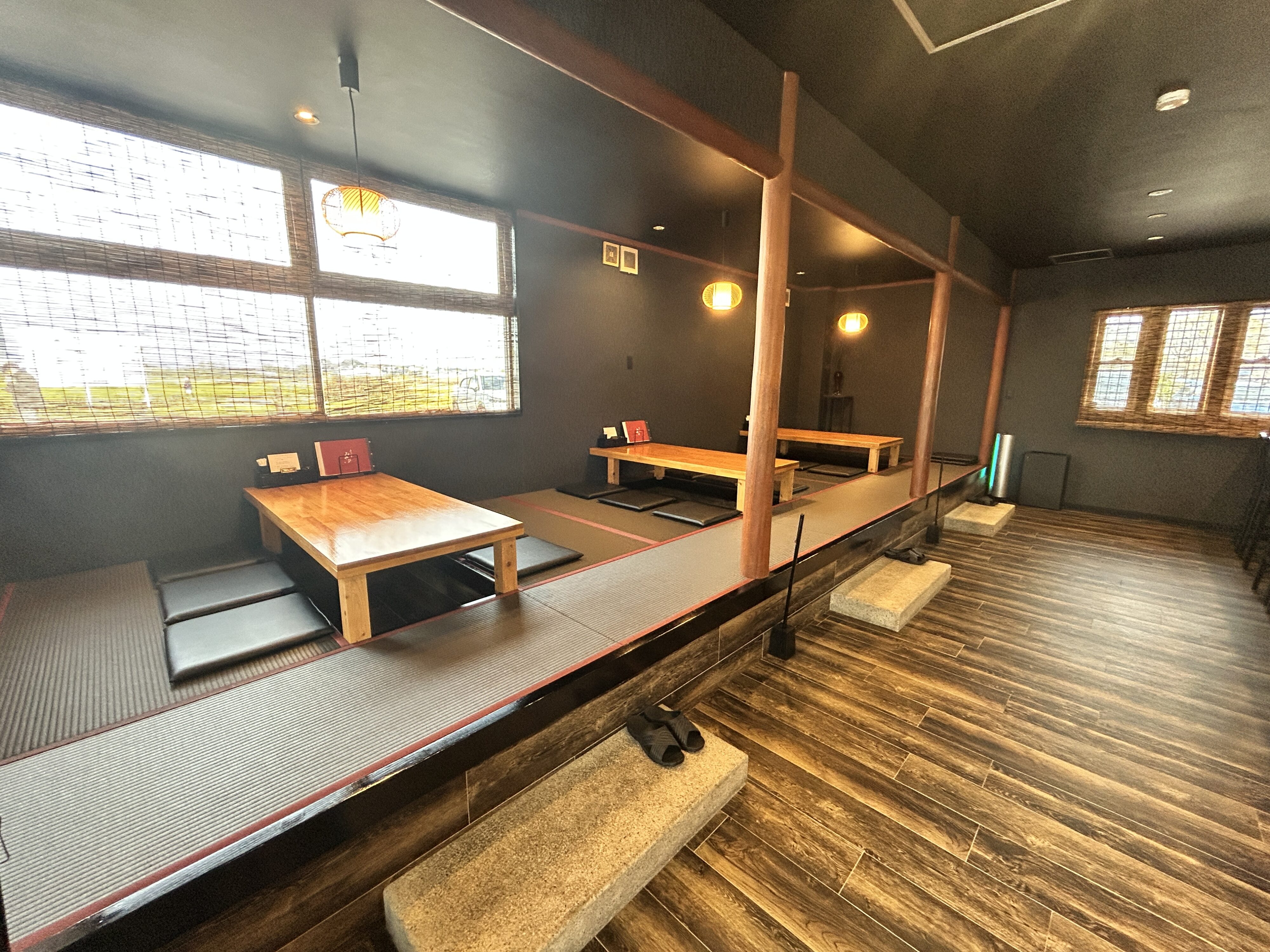 黒を基調とした落ち着いた外観が特徴で、店内は広々とした清潔感のある和空間。掘りごたつ席やカウンター席もあり、どんなシーンでも使いやすい雰囲気✨