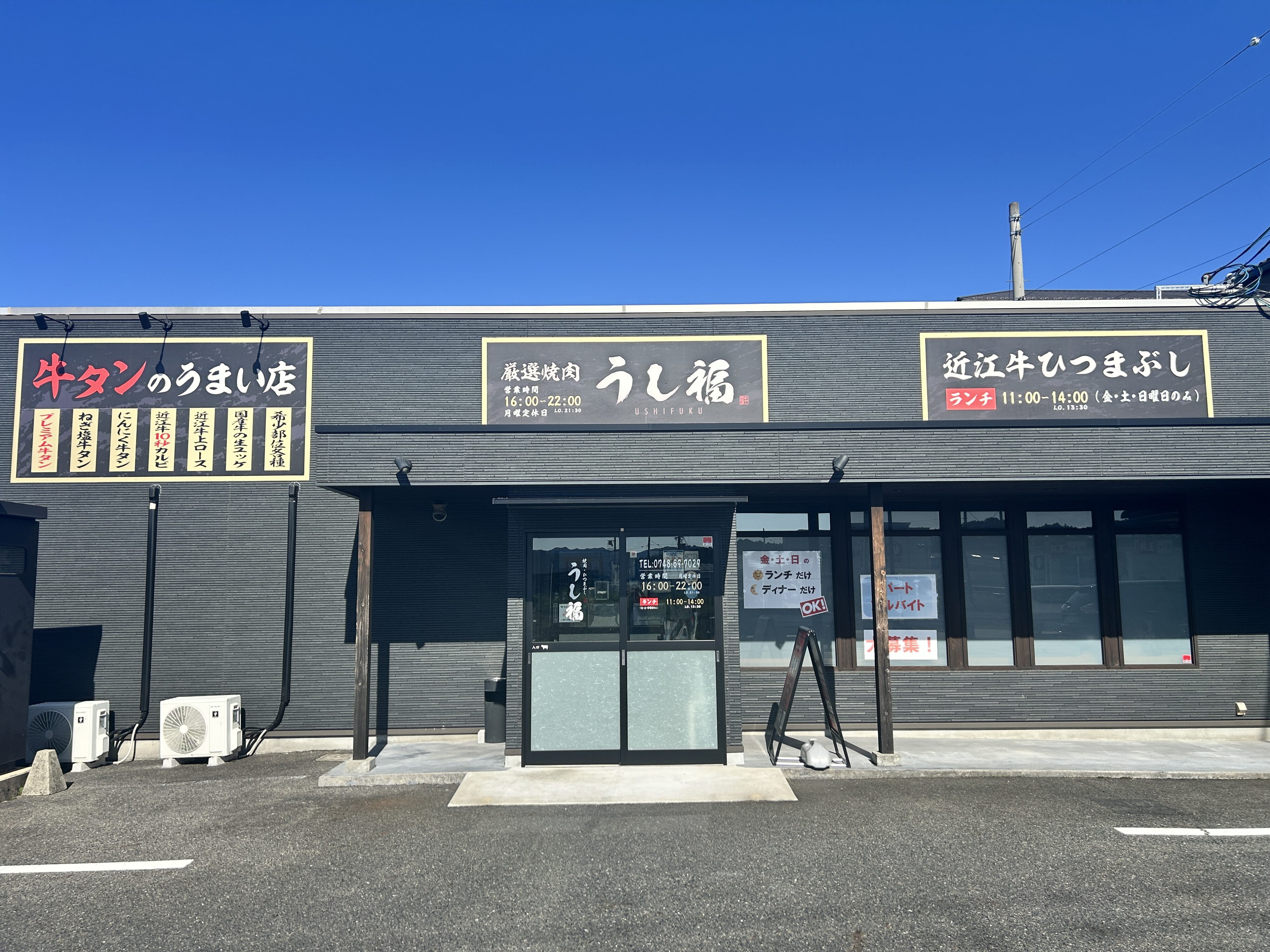 滋賀県甲賀市水口町、国道1号線からすぐの場所にある焼肉店「うし福」。
