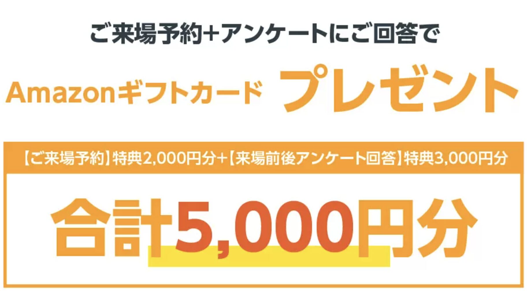 さらに!WEB予約のうえ来場・アンケート回答でAmazonギフトカード5,000円分プレゼント!モデルハウス見学や家づくり相談が今だけもっとお得に体験できるチャンスです✨